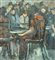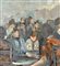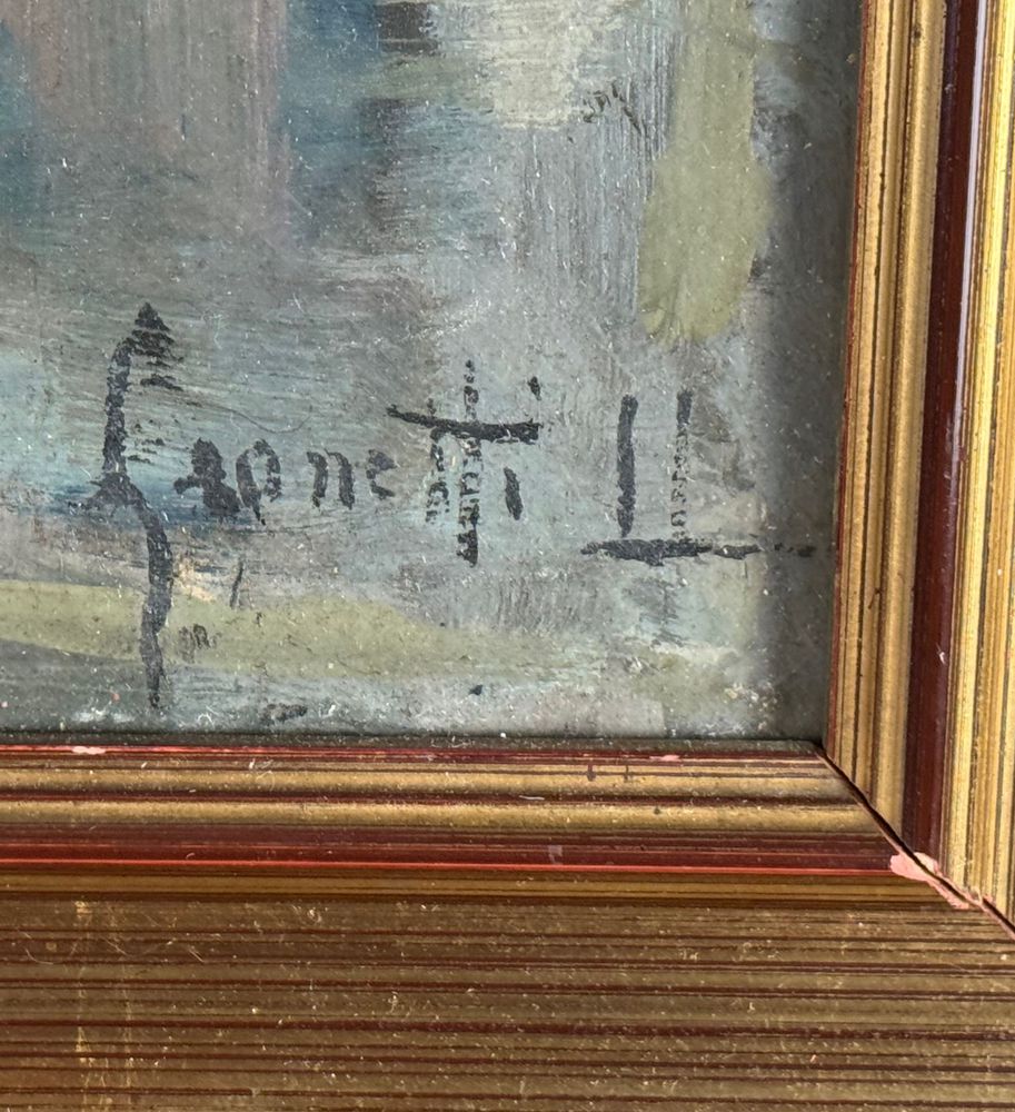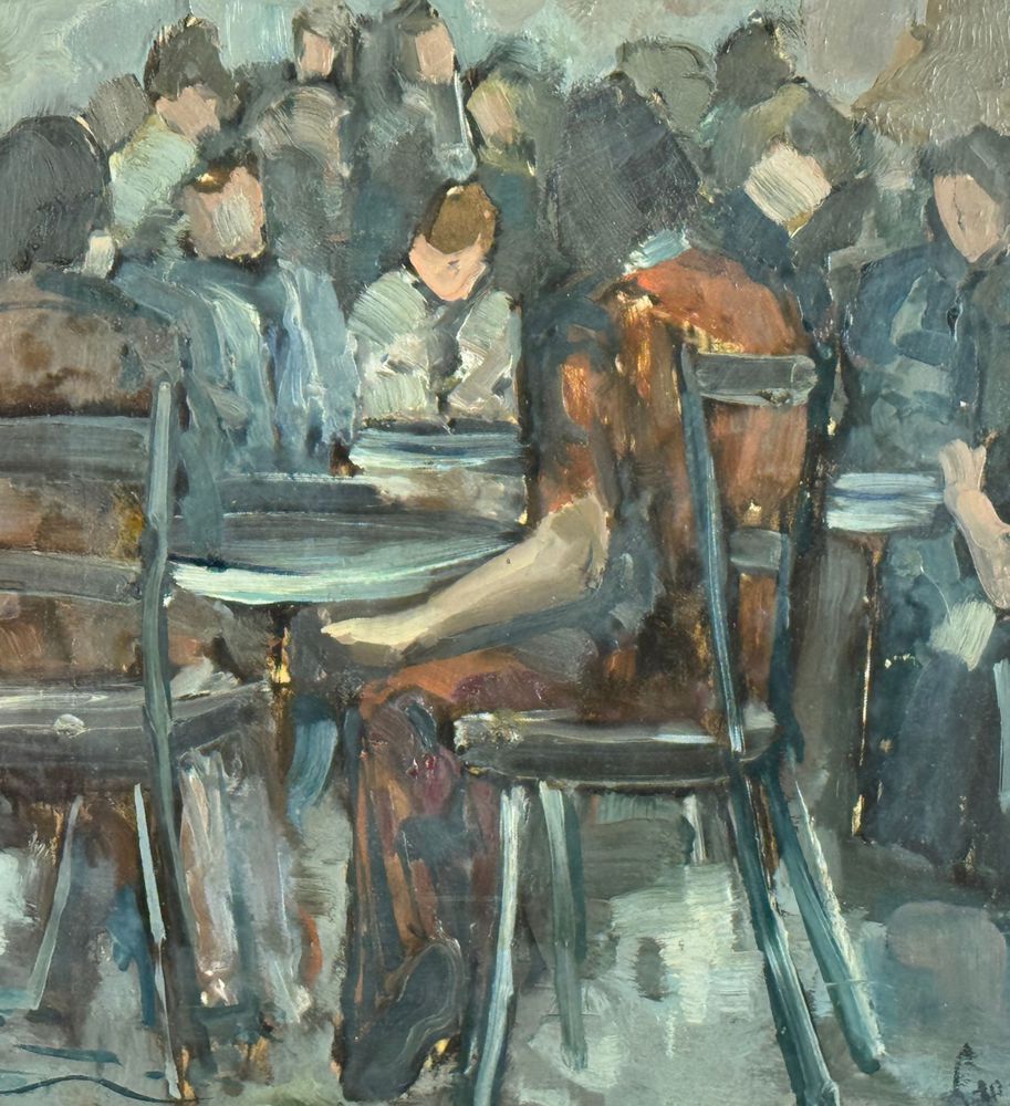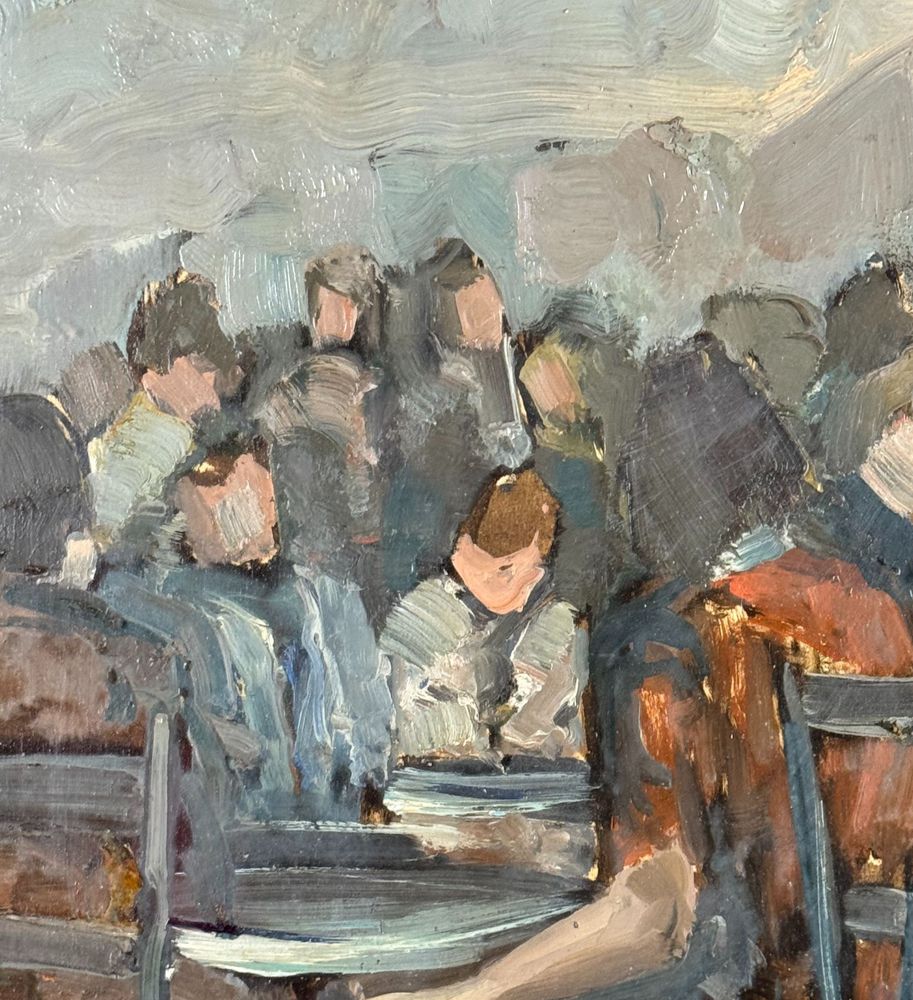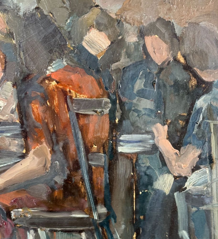 Dipinto olio su tavola, periodo XX secolo scuola Italiana, raffigurante Personaggi al tavolo. Dimensioni compreso cornice: 50x60 cm. Dimensioni interno cornice: 40x50 cm. Reca firma in basso a destra artista non identificato. Opera in buone condizioni.