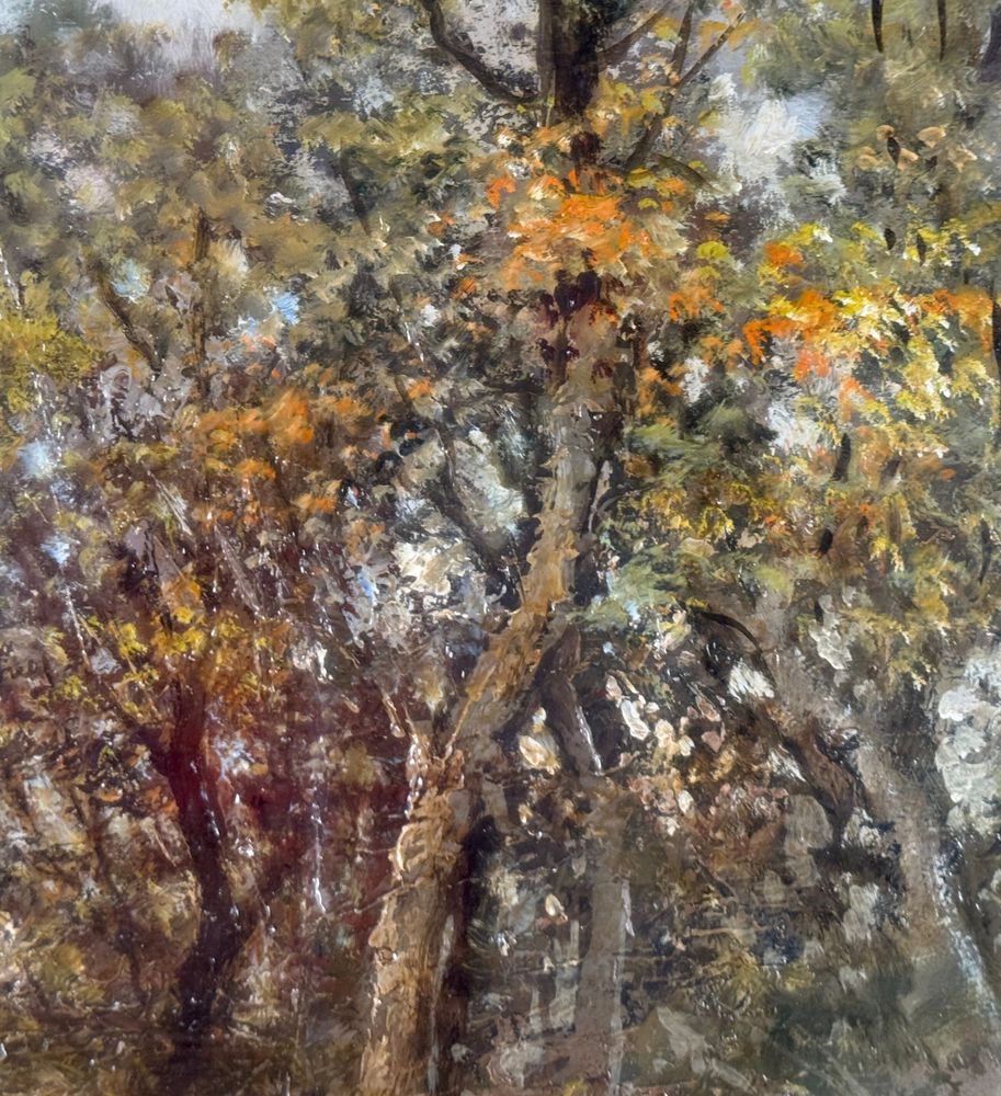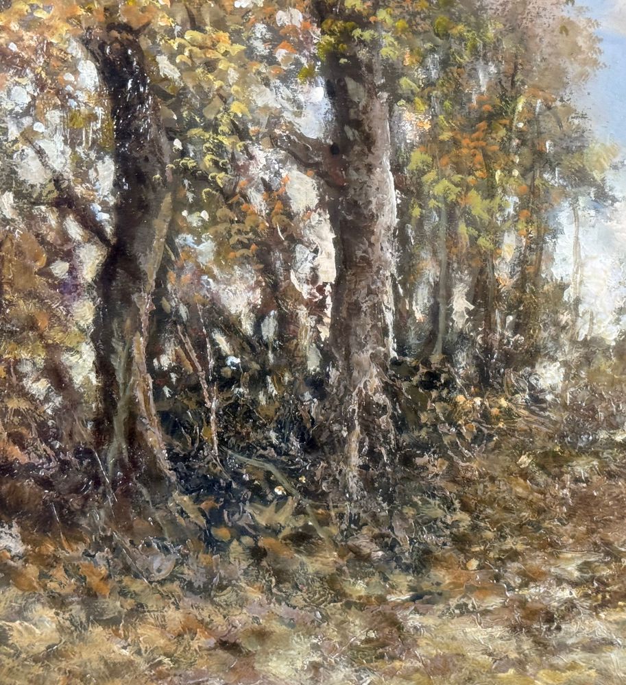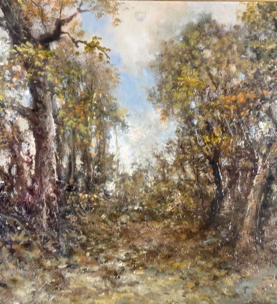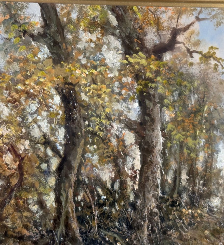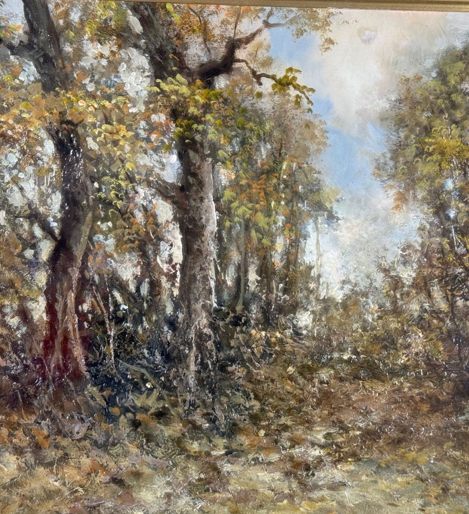 Dipinto olio su tavola, periodo XX secolo scuola Italiana, raffigurante Paesaggio boschivo. Dimensioni compreso cornice: 58x78 cm. Dimensioni interno cornice: 30x50 cm. Reca firma in basso a destra Augusto Radice. Opera in buone condizioni.