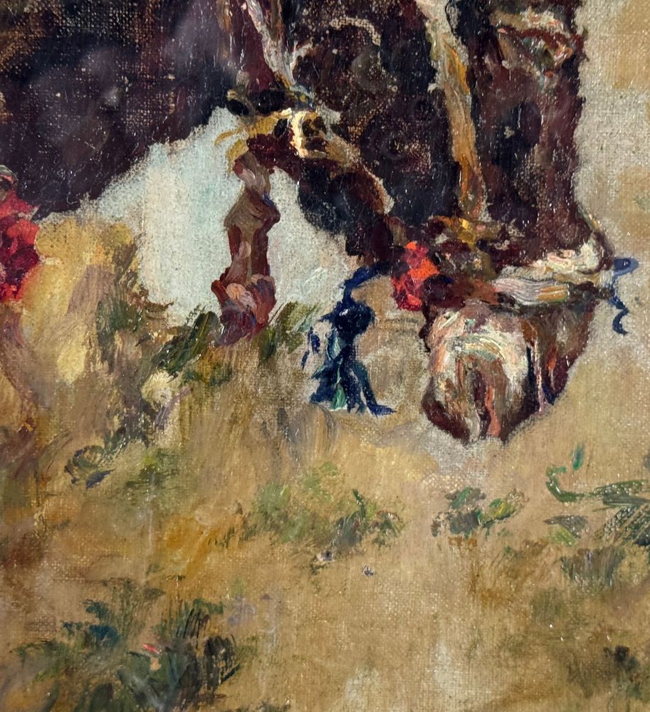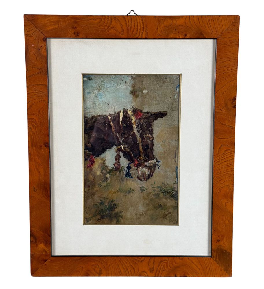 Dipinto olio su tela, periodo primi anni del XX secolo scuola Italiana, raffigurante Testa di cavallo. Dimensioni compreso cornice: 28x36 cm. Dimensioni interno cornice: 21x14 cm. Artista anonimo. Opera in buone condizioni.