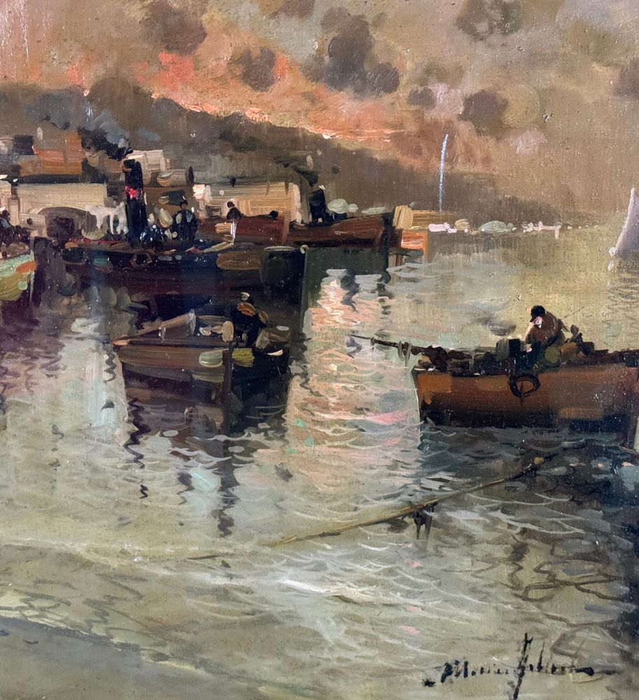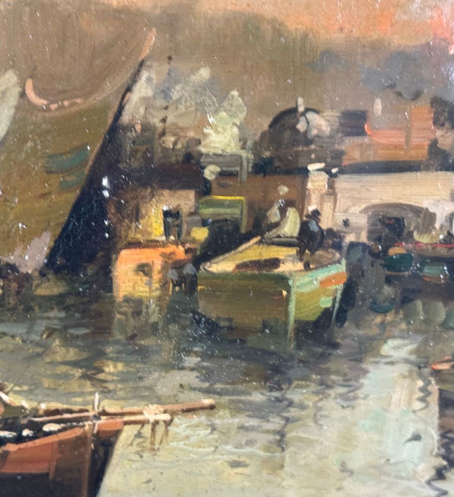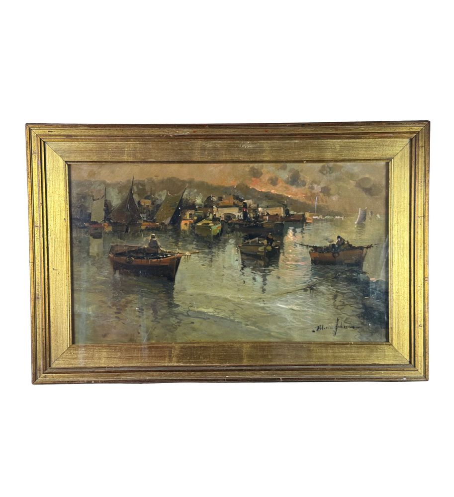 Dipinto olio su tela, periodo XX secolo, scuola Napoletana, raffigurante Scorcio di marina napoletana. Dimensioni compreso cornice: 56x86 cm. Dimensioni interno cornice: 40x70 cm. Reca firma in basso a destra artista non identificato. Opera in buone condizioni.