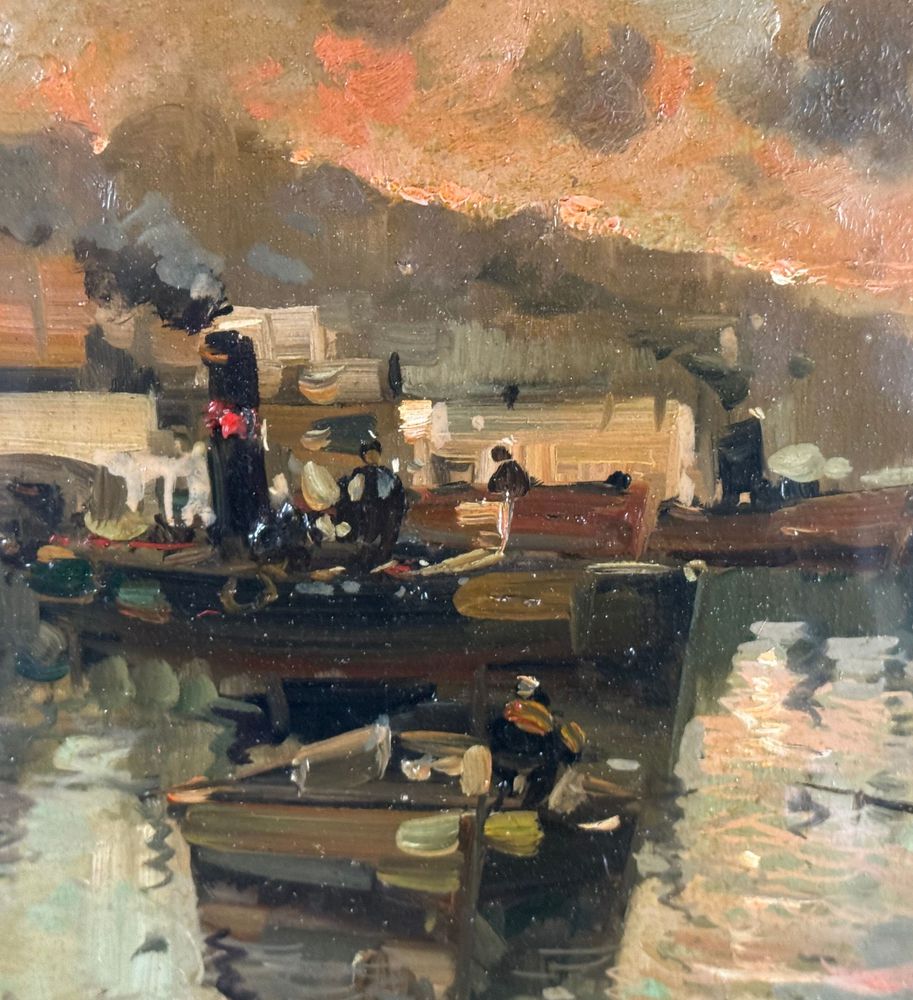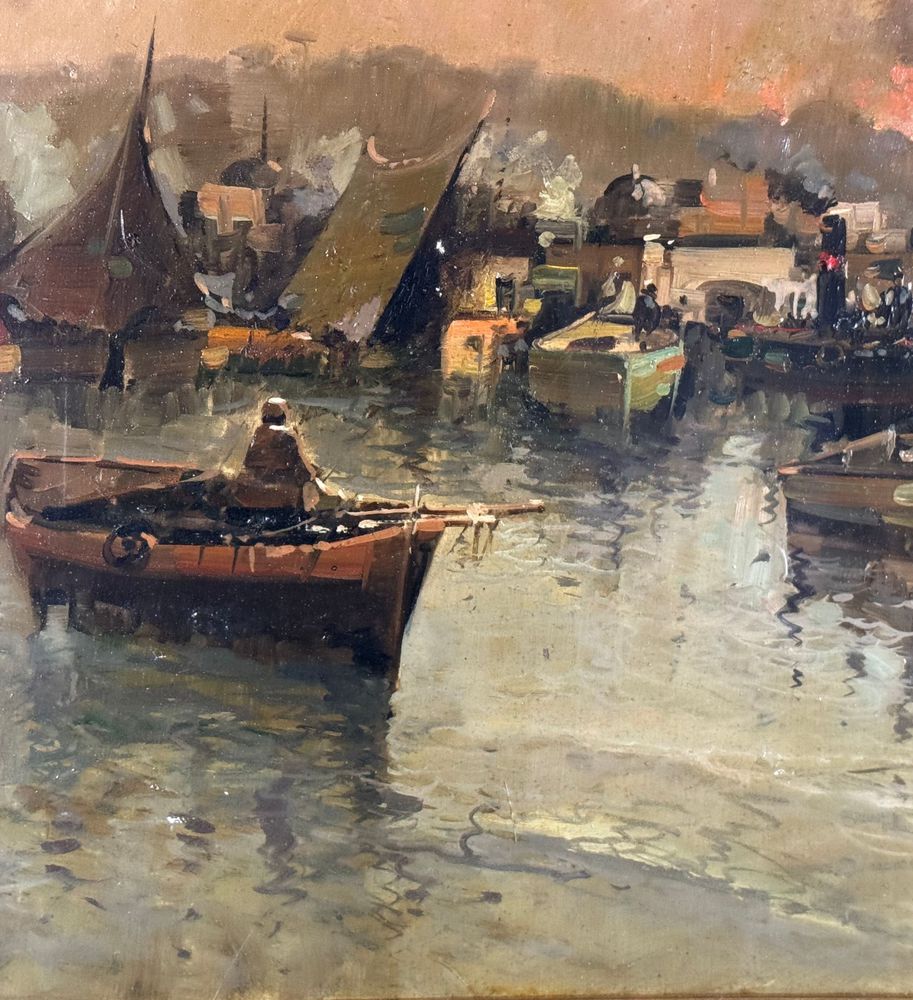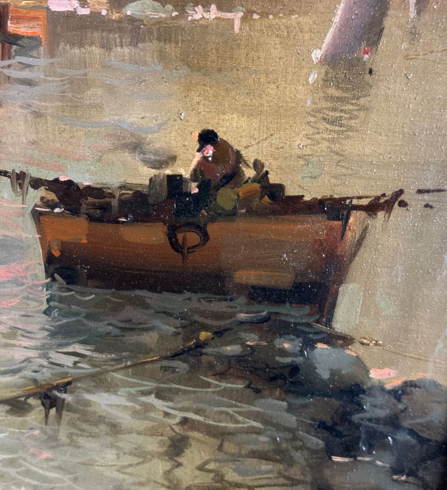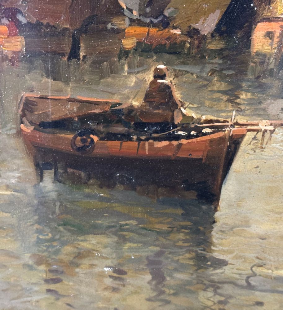 Dipinto olio su tela, periodo XX secolo, scuola Napoletana, raffigurante Scorcio di marina napoletana. Dimensioni compreso cornice: 56x86 cm. Dimensioni interno cornice: 40x70 cm. Reca firma in basso a destra artista non identificato. Opera in buone condizioni.