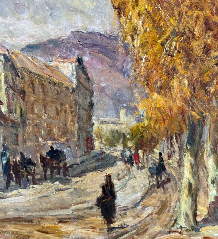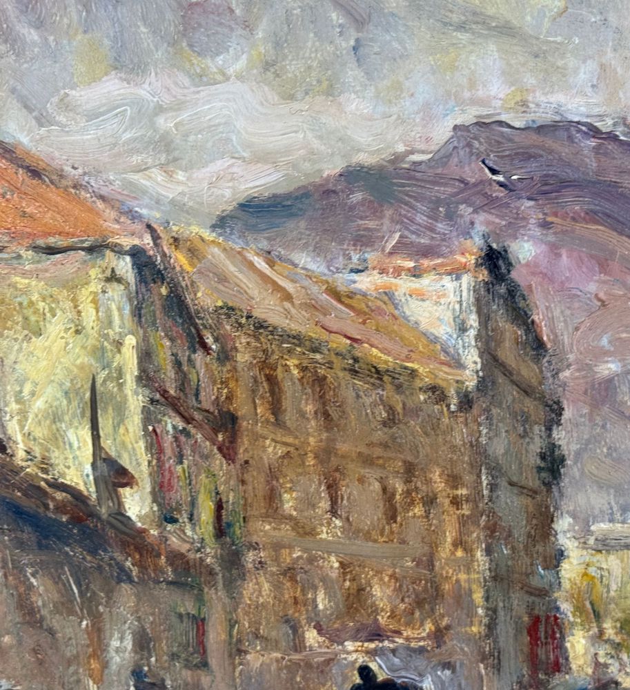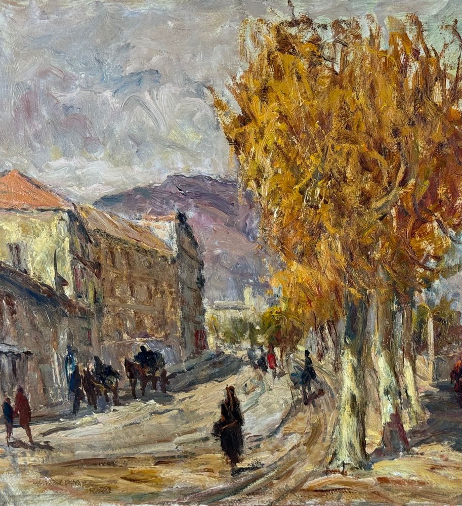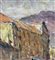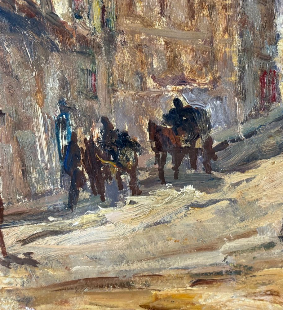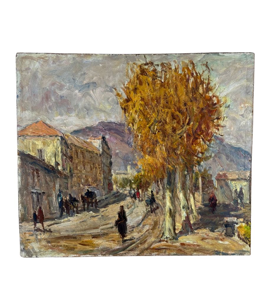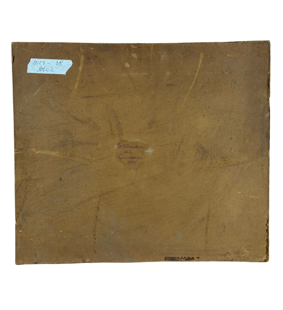 Dipinto olio su cartoncino, periodo XX secolo (1935), scuola Italiana, raffigurante Strada di Castellammare. Dimensioni: 45,5x39,5 cm. Artista anonimo. Opera in buone condizioni.