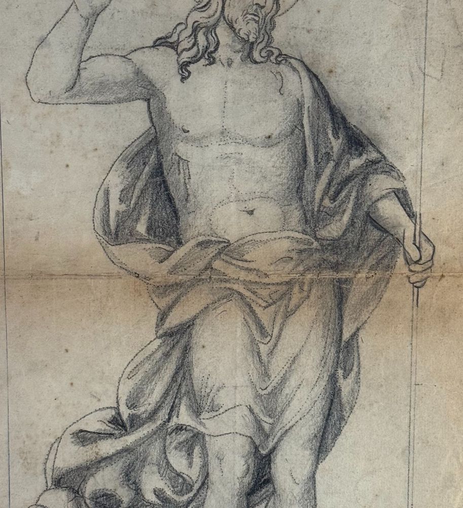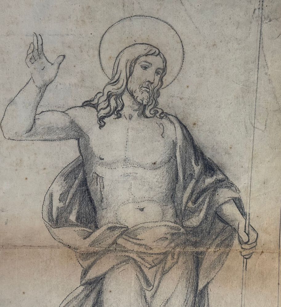 Disegno su carta, periodo accademico XIX secolo scuola Italiana, raffigurante Cristo. Dimensioni: 30x93 cm. Artista anonimo. Opera in buone condizioni con lievi segni di vissuto come da foto allegate.