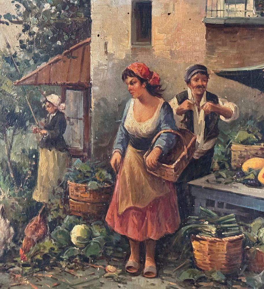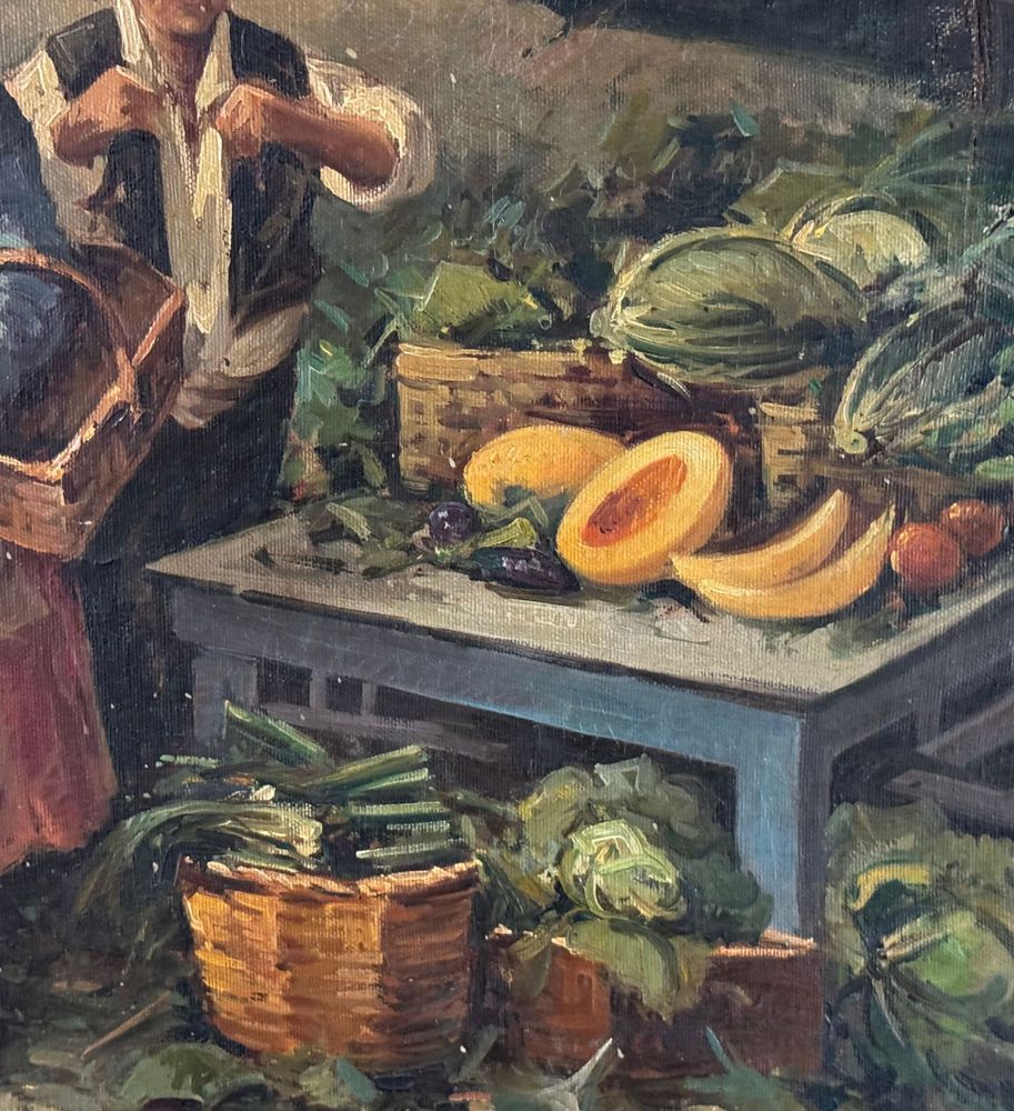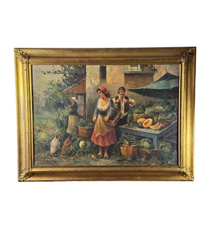Dipinto olio su tela, periodo XX secolo scuola Italiana, raffigurante Il venditore di frutta. Dimensioni compreso cornice: 62x82,5 cm. Dimensioni interno cornice: 48x67 cm. Reca firma in basso a sinistra artista non identificato. Opera in buone condizioni con lievi segni di vissuto come da foto allegate.