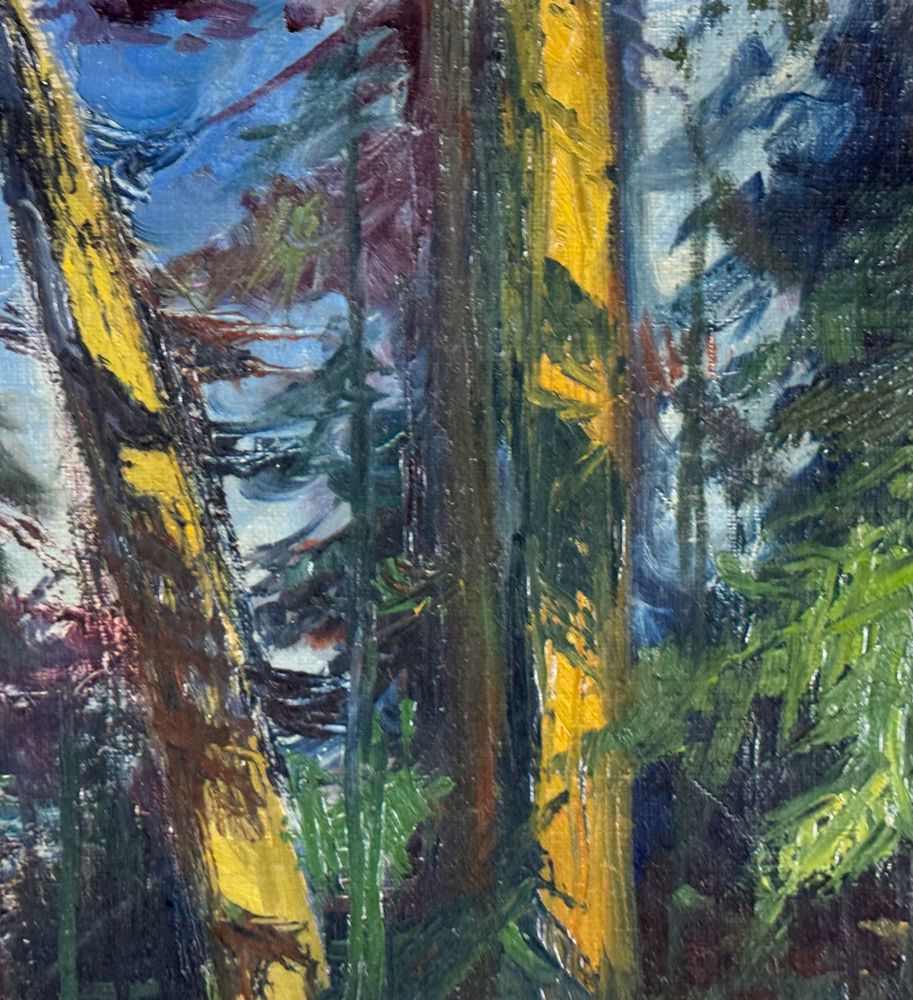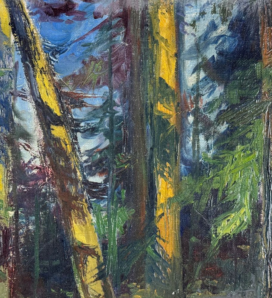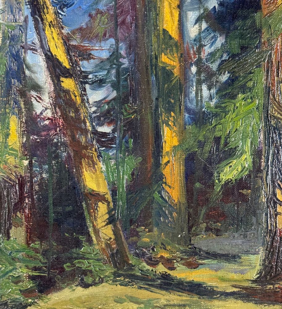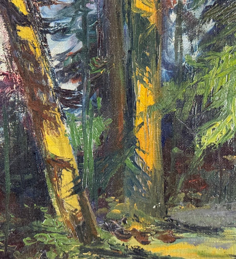 Dipinto olio su tela, periodo XX secolo scuola Europea, raffigurante Paesaggio alberato. Dimensioni compreso cornice: 39x55 cm. Dimensioni interno cornice: 33x49 cm. Reca firma in basso a destra da artista non identificato. Opera in buone condizioni.