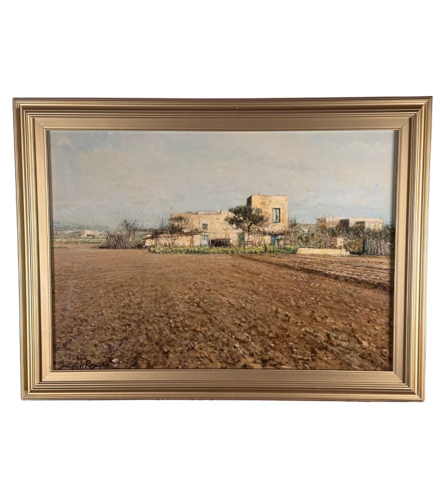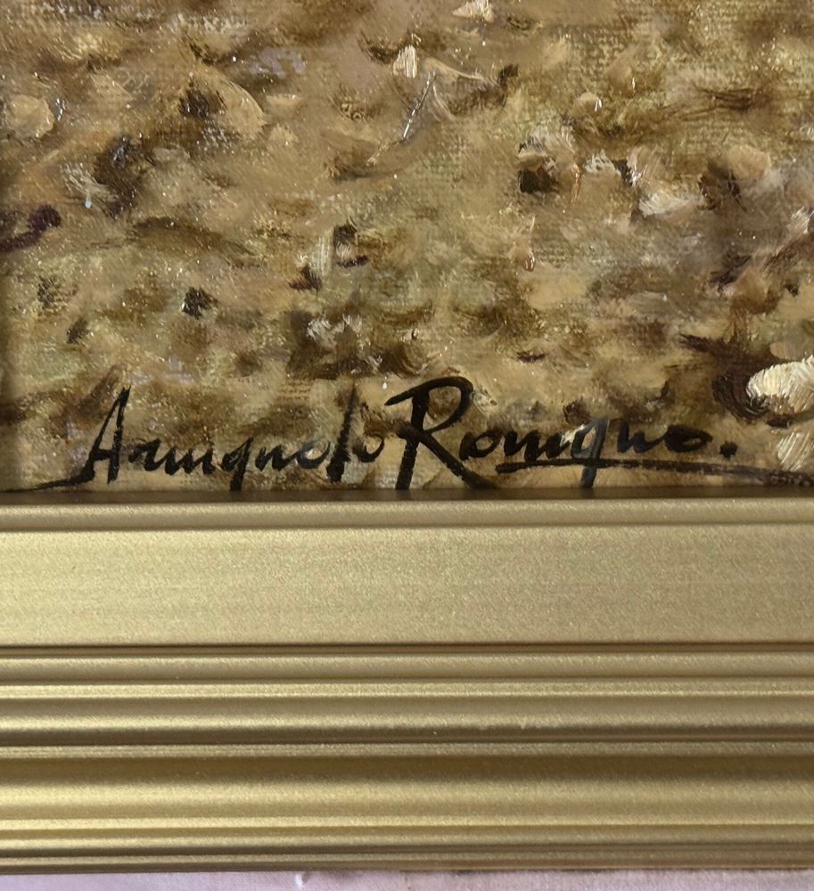 Dipinto olio su tela, periodo XX secolo scuola Italiana, raffigurante Paesaggio. Dimensioni compreso cornice: 58x78 cm. Dimensioni interno cornice: 50x70 cm. Reca firma in basso a sinistra Armando Romano (1953). Opera in ottime condizioni. Il paesaggio è stato da sempre protagonista nella ricerca artistica, sia come ambientazione, come sfondo, ma anche come soggetto esso stesso. La descrizione naturalistica del paesaggio è stata una costante aspirazione per i pittori. Ogni periodo storico ha dato la propria interpretazione del paesaggio contribuendo all’evoluzione della sua descrizione: dapprima con una ricerca sullo spazio, tramite la prospettiva brunelleschiana nel primo Rinascimento; poi sulla resa atmosferica, nel Cinquecento; fino ad arrivare alla rappresentazione di ogni singola vibrazione della luce sugli oggetti nell’Impressionismo. In particolare quello della “marina” è un tema molto ricorrente tra gli artisti. Innanzitutto per il lirismo implicito nelle vedute che si affacciano sul mare o su romantiche immagini di porticcioli. In secondo luogo perché la rappresentazione di superfici acquatiche permette ai pittori di dare libero sfogo all’estro cromatico, grazie a raffinati giochi di riflessi e riverberi.