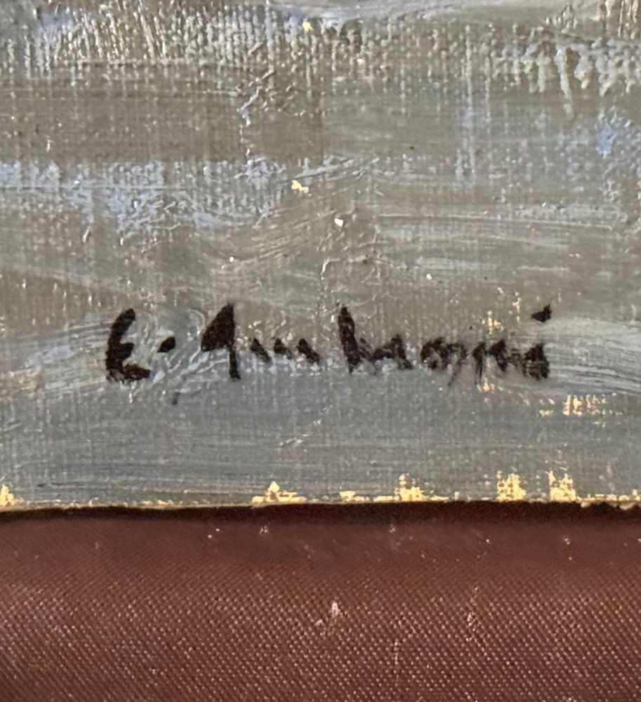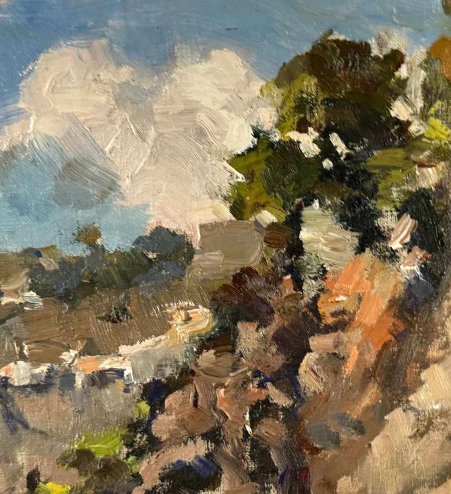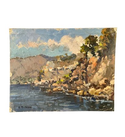 Dipinto olio su tela applicata su cartoncino, periodo XX secolo scuola Italiana, raffigurante Paesaggio. Dimensioni: 33x26 cm. Firmato in basso a sinistra da artista non identificato. Opera in buone condizioni.