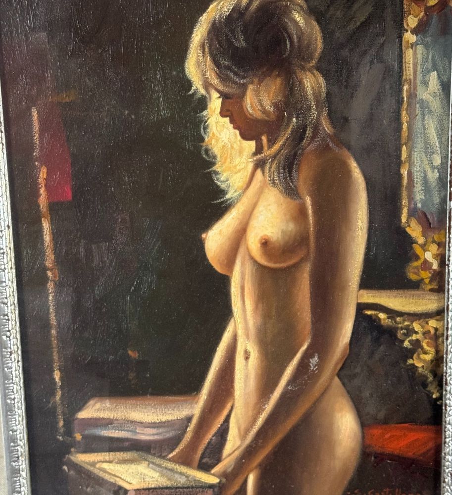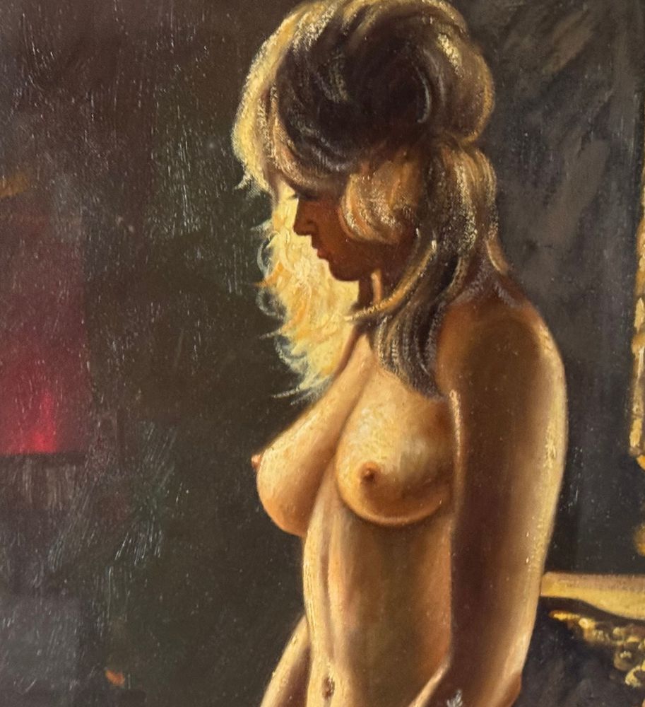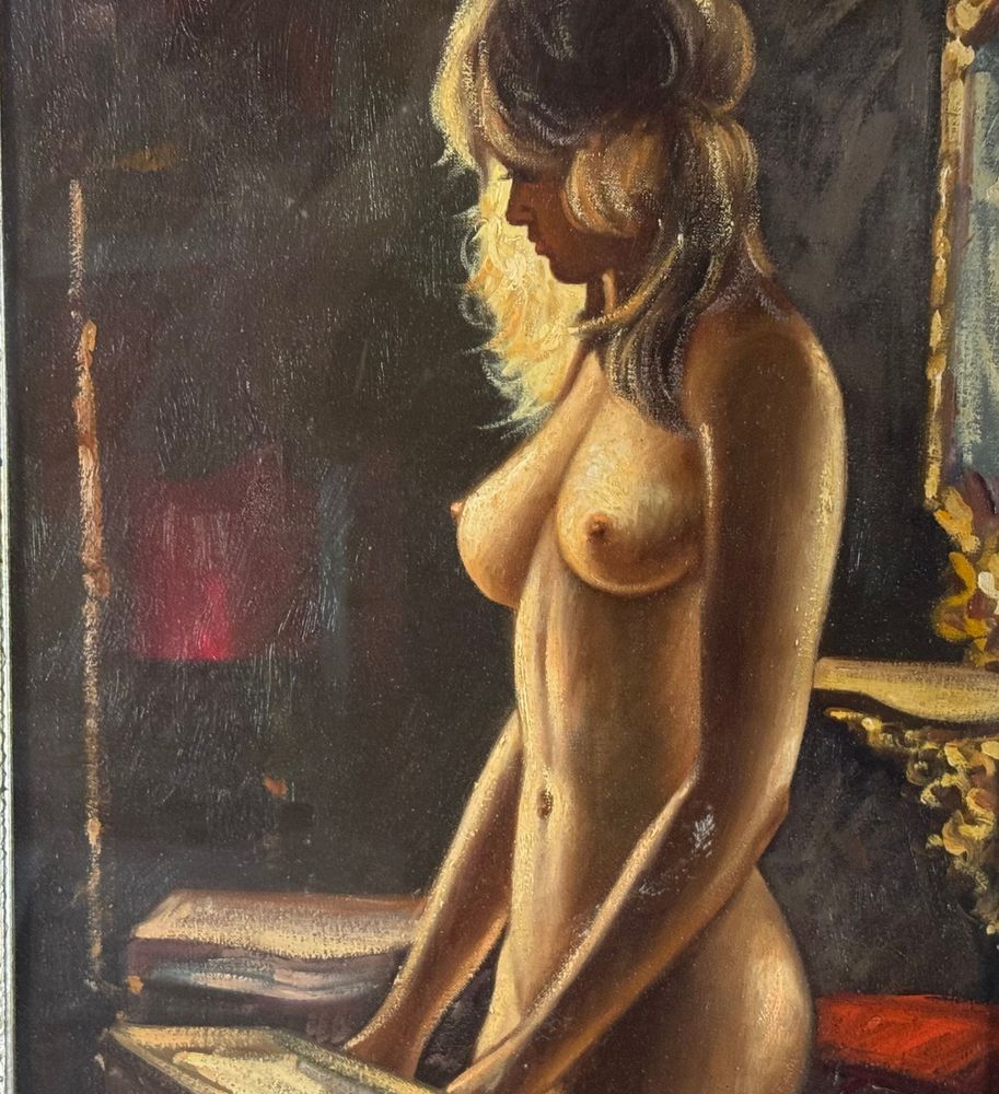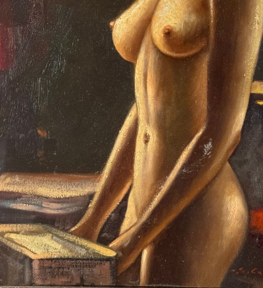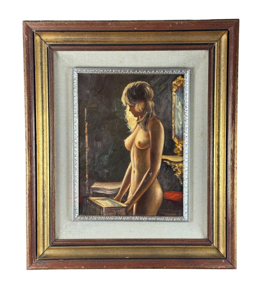 Dipinto olio su tela, periodo XX secolo scuola Italiana, raffigurante Nudo di donna. Dimensioni compreso cornice: 57x67 cm. Dimensioni interno cornice: 30x40 cm. Reca firma in basso a destra da Salvatore Castellano. Opera in buone condizioni.