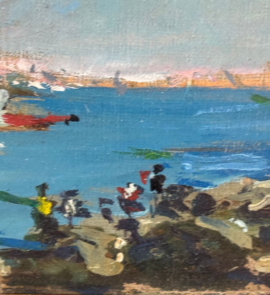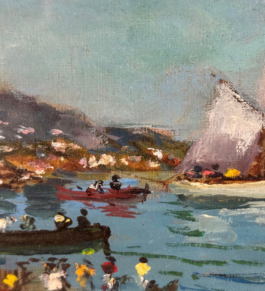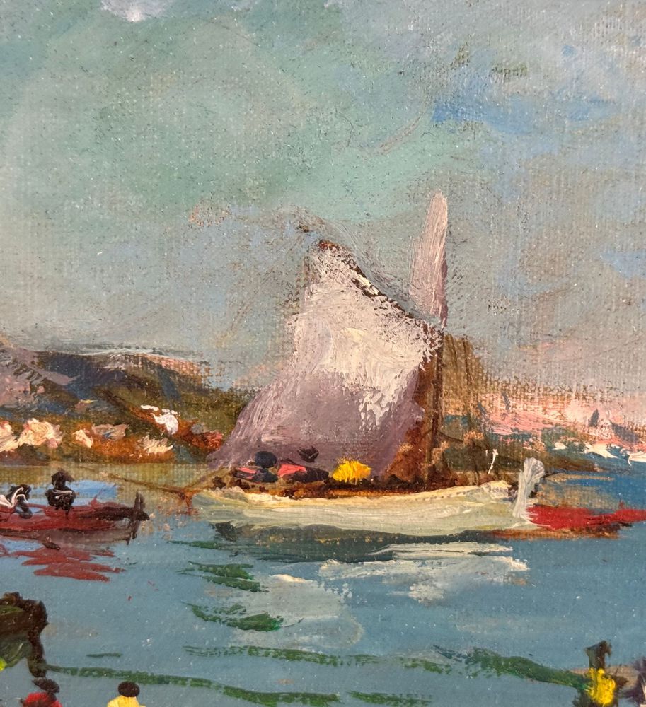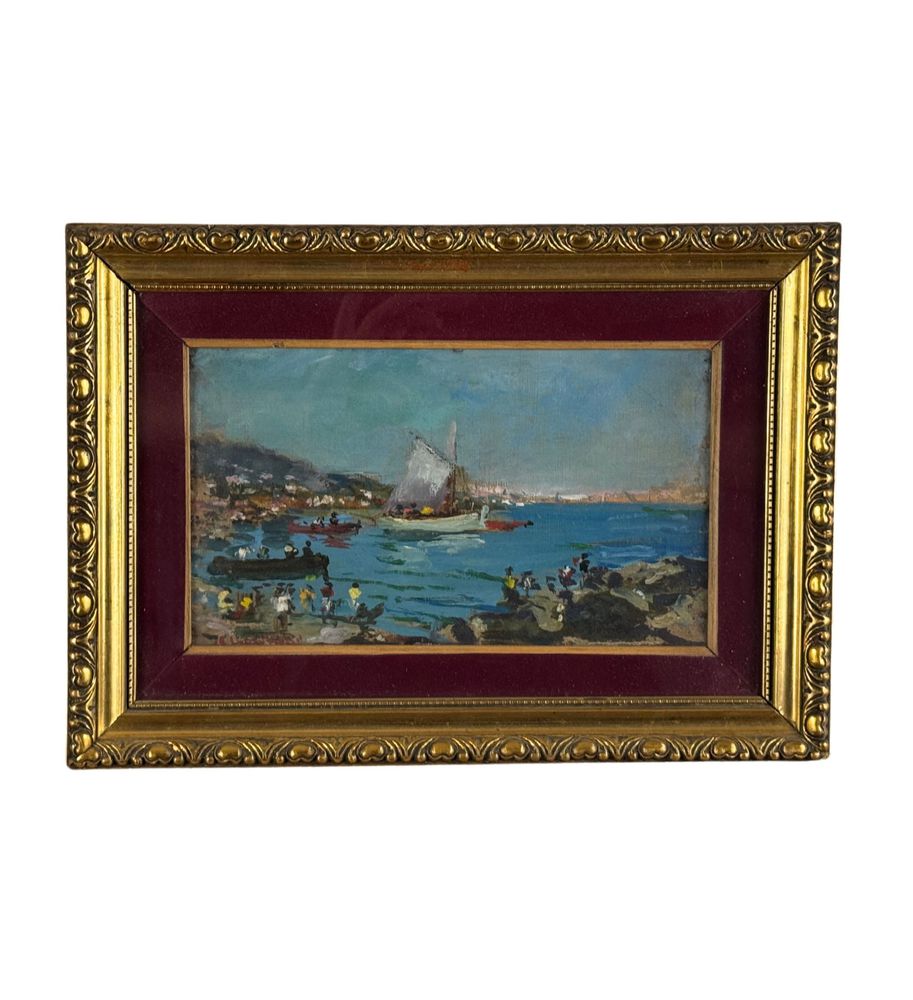 Dipinto olio su tela, periodo XX secolo scuola Italiana, raffigurante Marina napoletana. Dimensioni compreso 36x25 cm. Dimensioni interno: 25,5x15 cm. Firmato in basso a sinistra R. Carignani. Opera in buone condizioni.