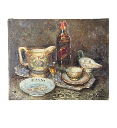 Dipinto olio su tela, periodo XX secolo scuola italiana raffigurante Oggetti antichi. Dimensioni: 51x41 cm. Firma in basso a destra. Opera in buone condizioni con lievi segni di vissuto come da foto allegate.