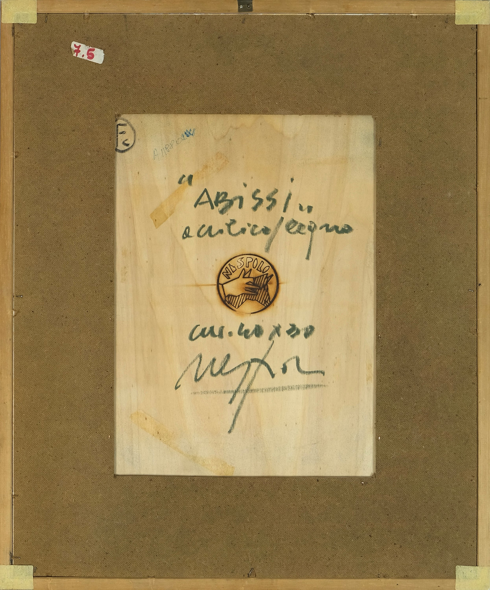 Sul verso: firma, titolo e timbro a fuoco dell'Artista.
