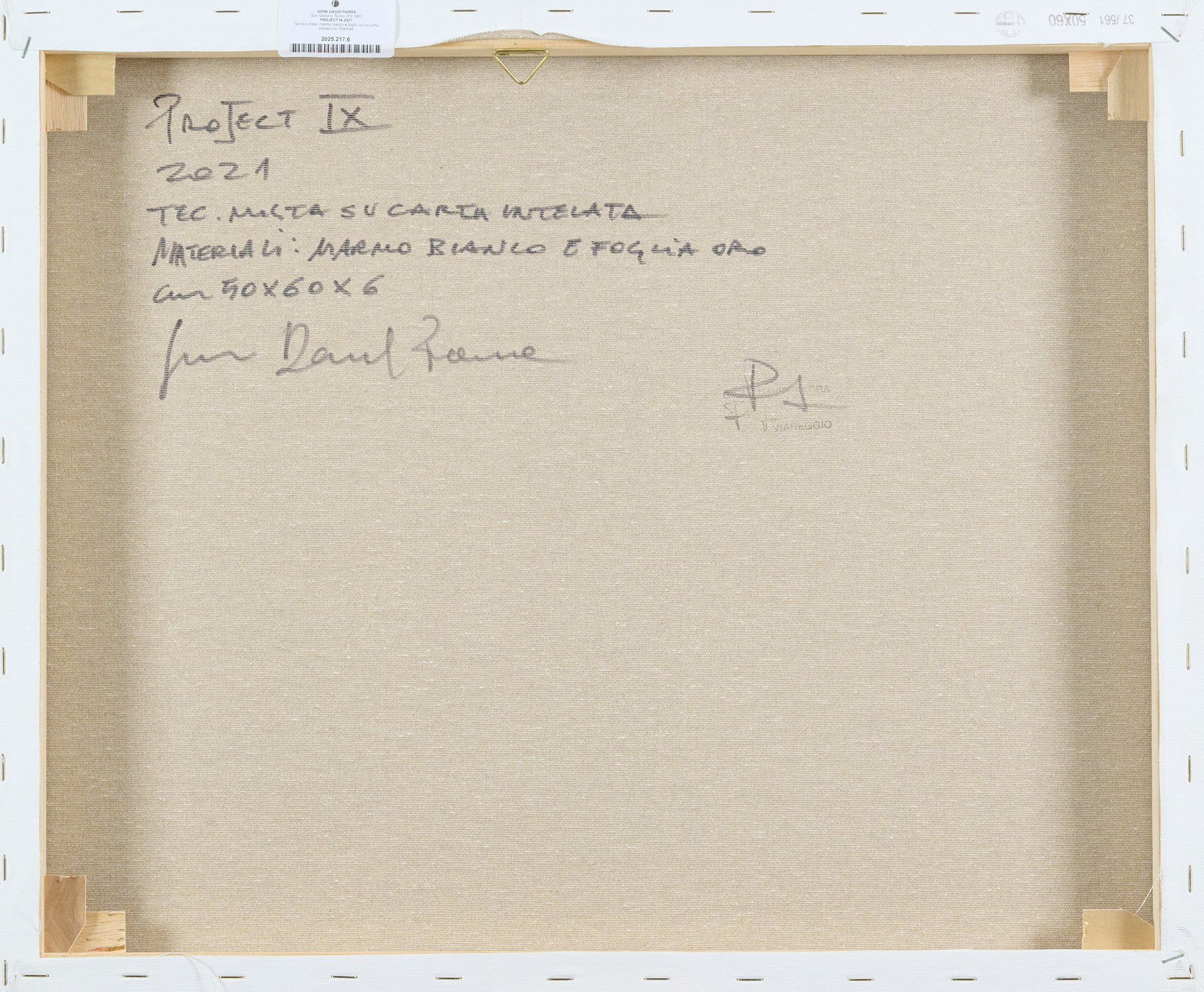 Sul verso: firma, data, titolo, descrizione e timbro dell'Artista.