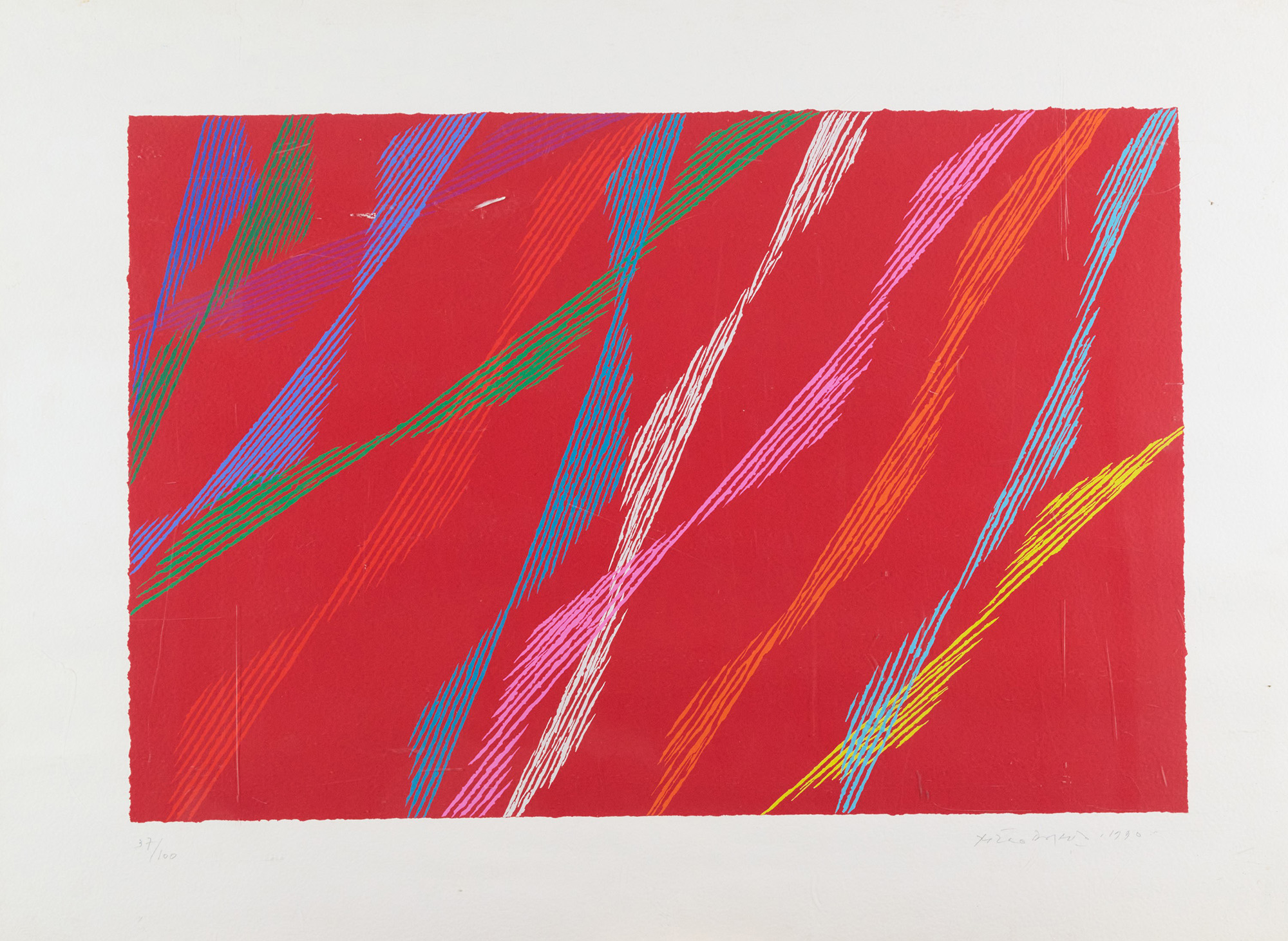 Firma e data in basso a destra, tiratura e timbro a secco Grafiser Stamperia D'Arte, Roma, in basso a sinistra.