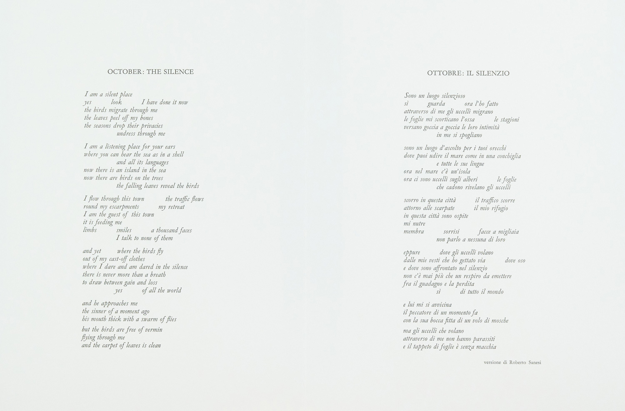 La cartella è corredata di una poesia di Nathaniel Tarn.