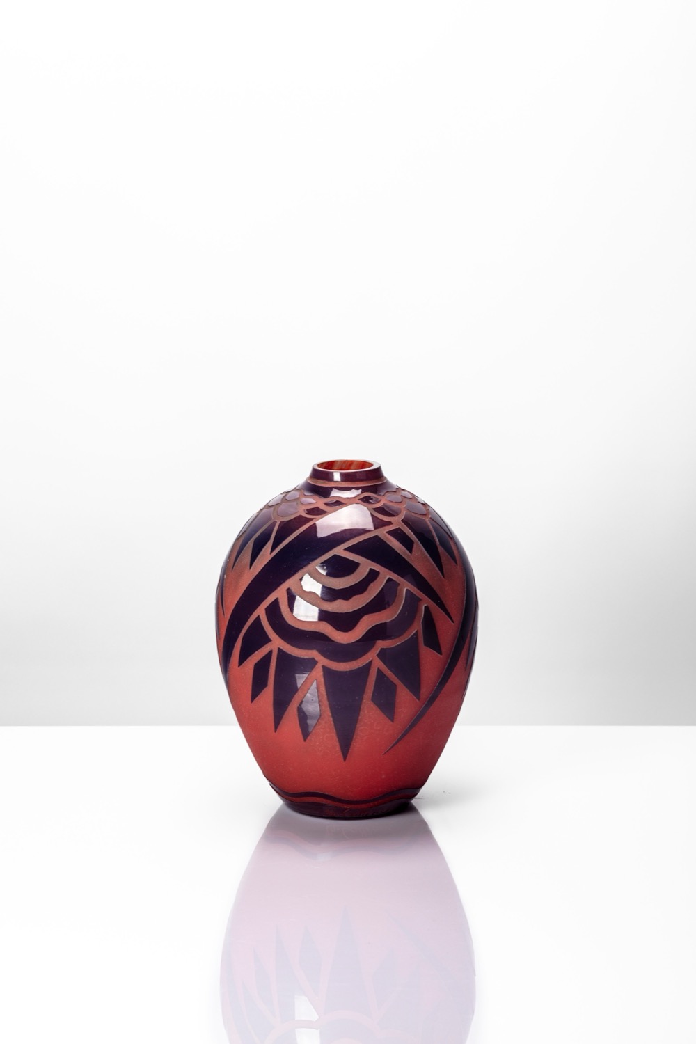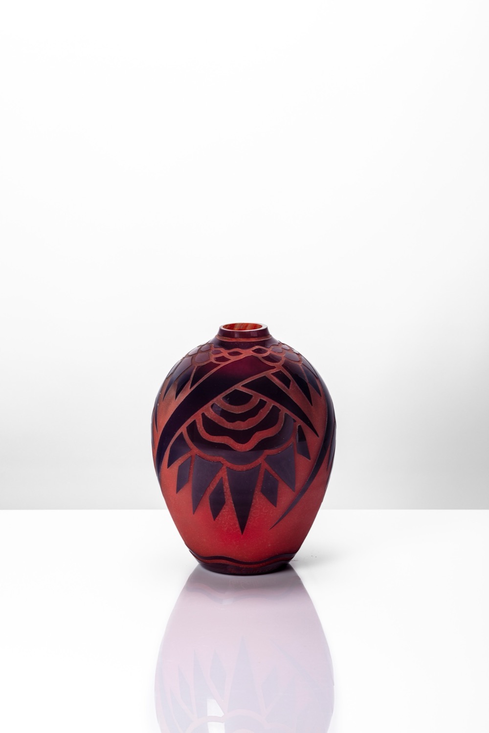 Vaso ovoidale monostrato inciso ad acido con decoro geometrico