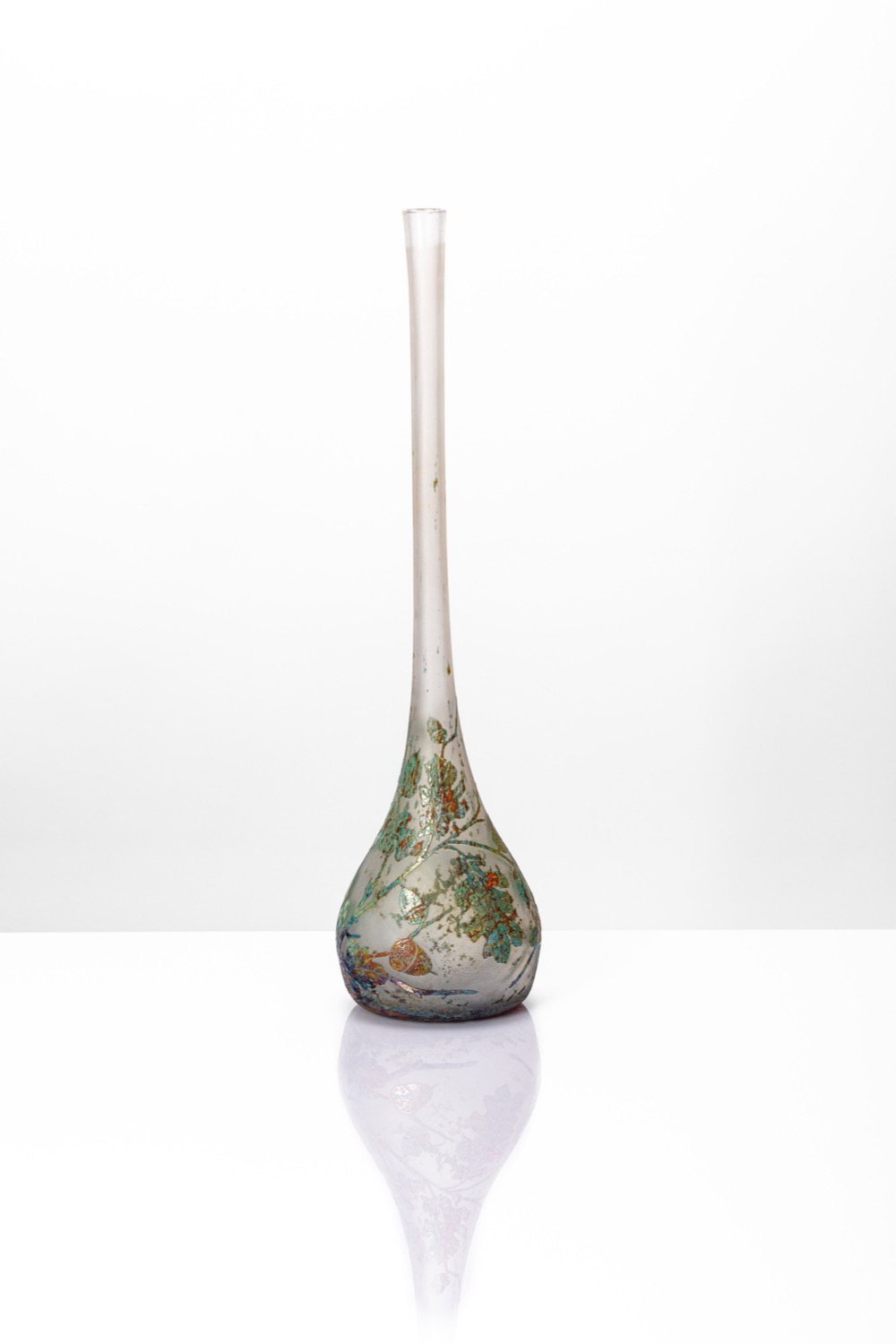 Vaso solifleur inciso ad acido doppio strato con decoro di tralci di quercia con ghiande