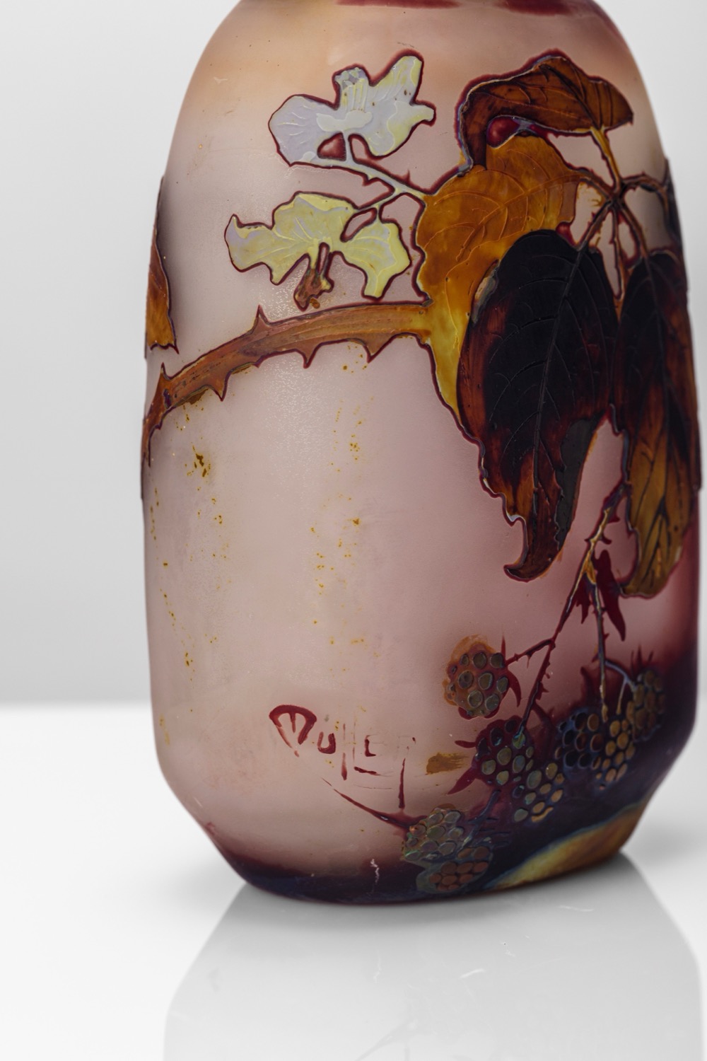 Vaso a sezione ellitica inciso ad acido triplo strato con decoro tralci di more