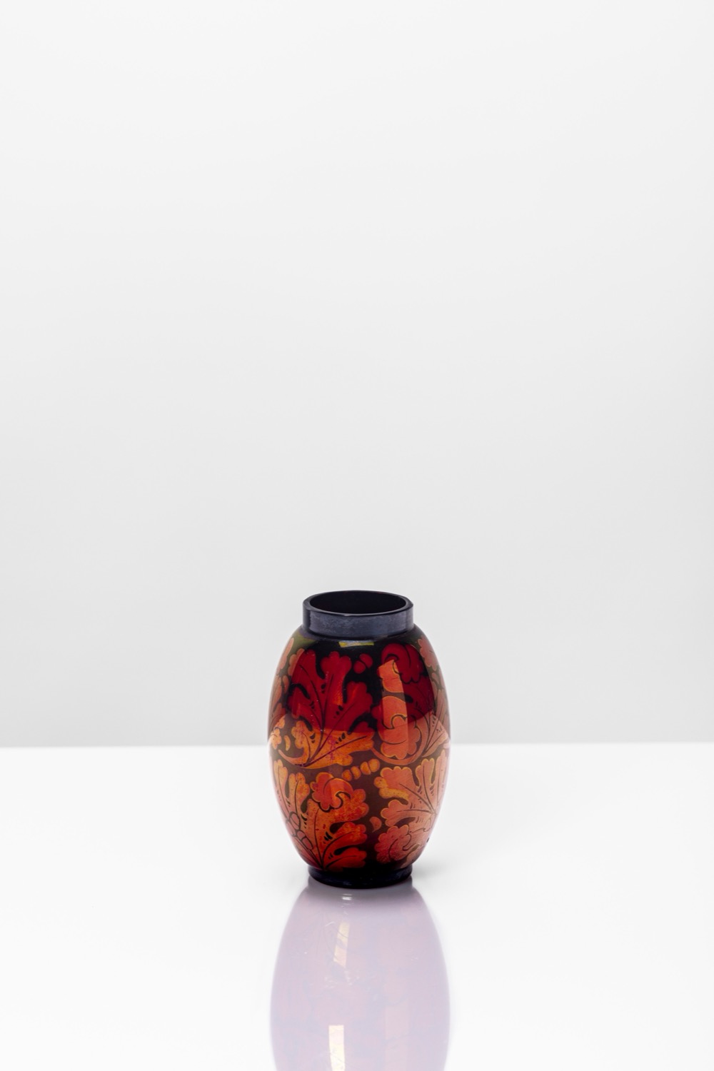 Vaso ovoidale in vetro multistrato con colletto e decoro fogliato