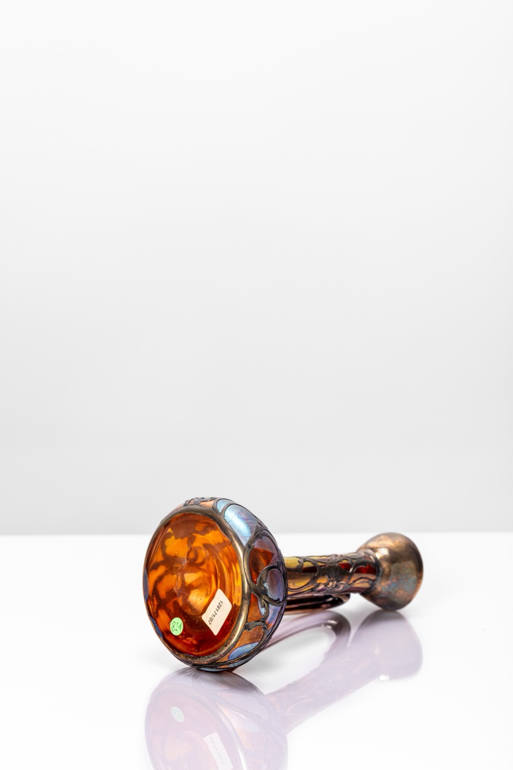 Vaso con applicazioni in metallo argentato a sostegno dell'impugnatura, inciso ad acido con decoro di tralci e fiori