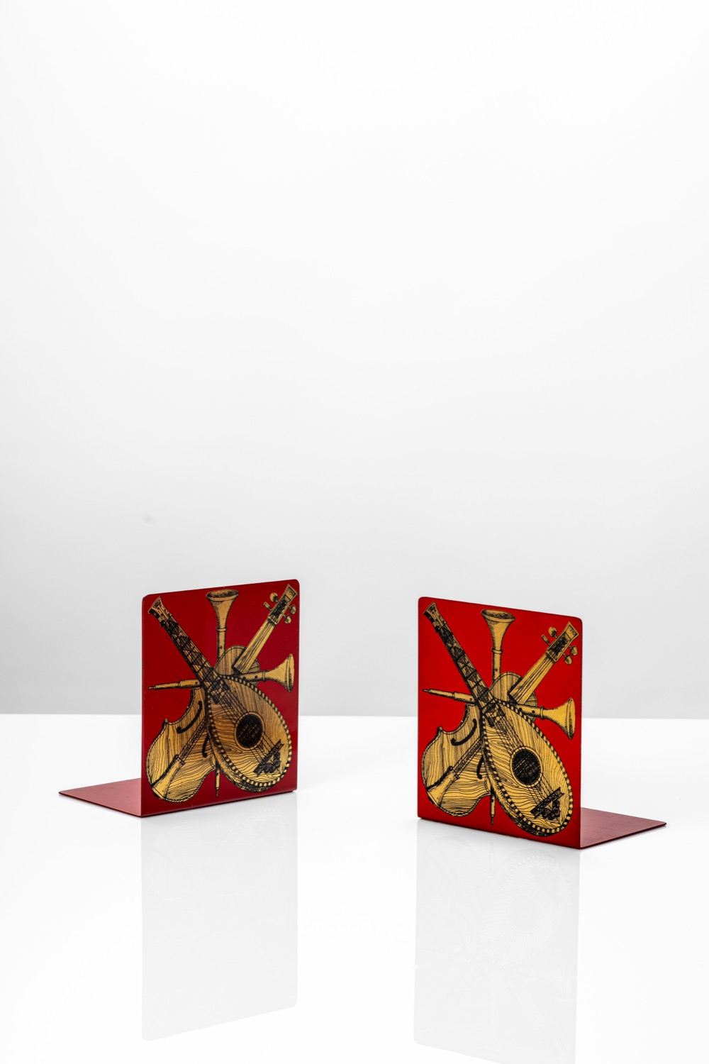 Piero Fornasetti (Milano 10/11/1913 - Milano 09/10/1988) - Coppia di fermalibri, decoro strumenti musicali, 1960 circa
