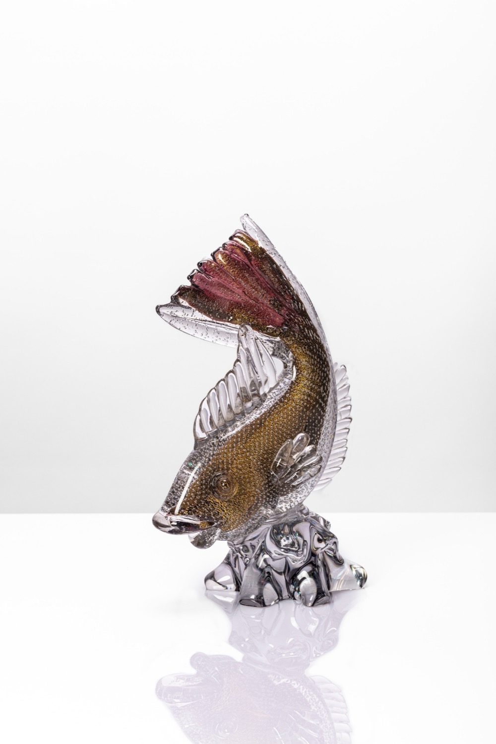Scultura policroma raffigurante carpa in movimento in vetro sommerso