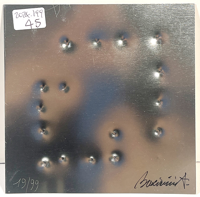 BRESCIANINI ANGELO "Senza Titolo" Multiplo realizzato in alluminio cromatocm 16x16 Tiratura realizzata in 99 esemplari Firmato a mano dall'artista al retro Numerazione incisa al retro Edizione realizzata in esclusiva per la Minotauro Fine Art srl di Palazzolo sull'Oglio(BS) Autentica dell'artista su fotografia