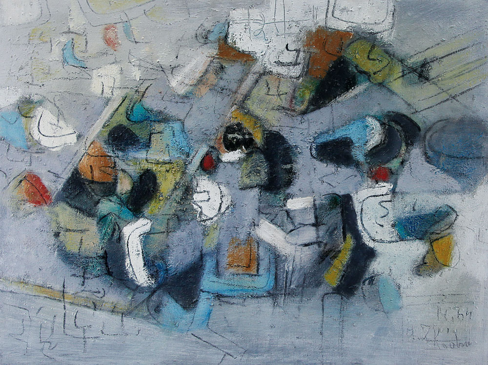 olio su tela cm. 60x80, firma e anno in basso a destra, titolo, firma, anno e località (Milano) al retro.