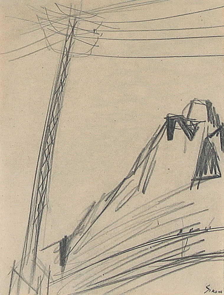 matita grassa su carta cm. 26,5x19,5; firma in basso a destra, presenta un altro disegno a matita raffigurante un Sentiero di ciottoli con figura al retro, dichiarazione d'autenticità a cura di Francesco Meloni su foto.