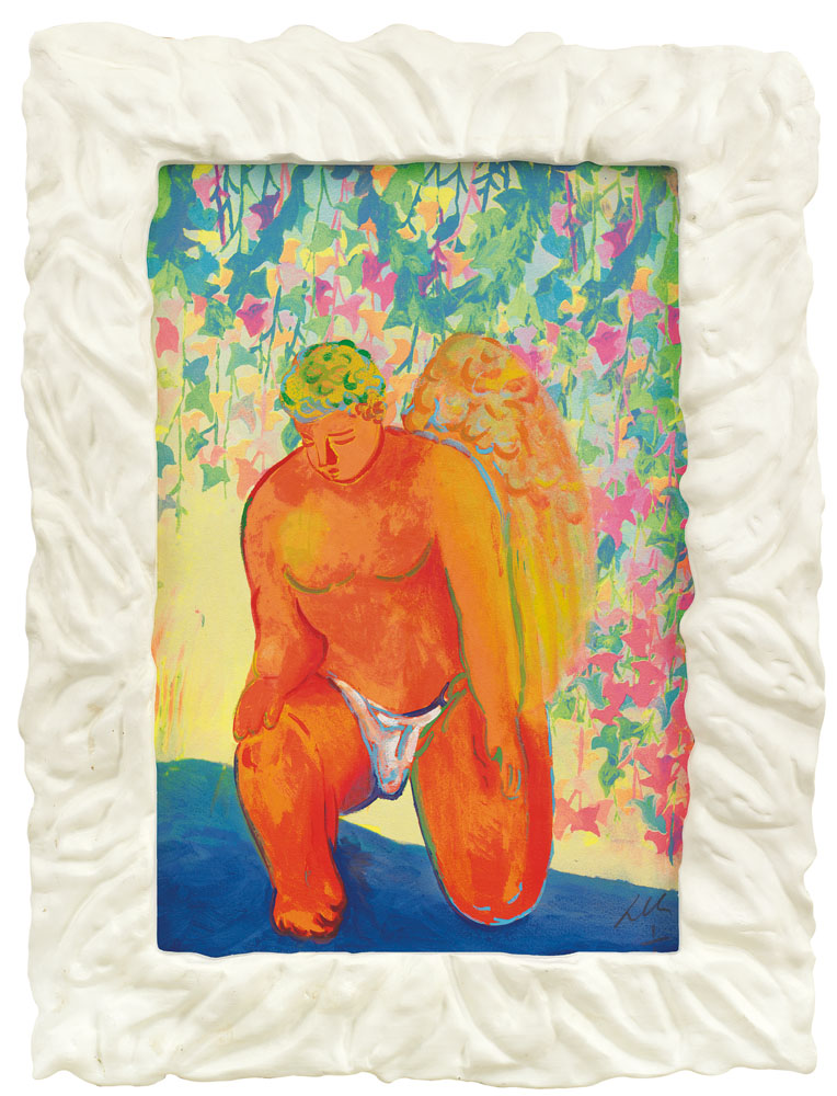 monotipo su cartoncino cm. 98x67 con cornice realizzata dall'artista cm. 128x95, firma in basso a destra, dichiarazione d'autenticità dell'artista su foto.