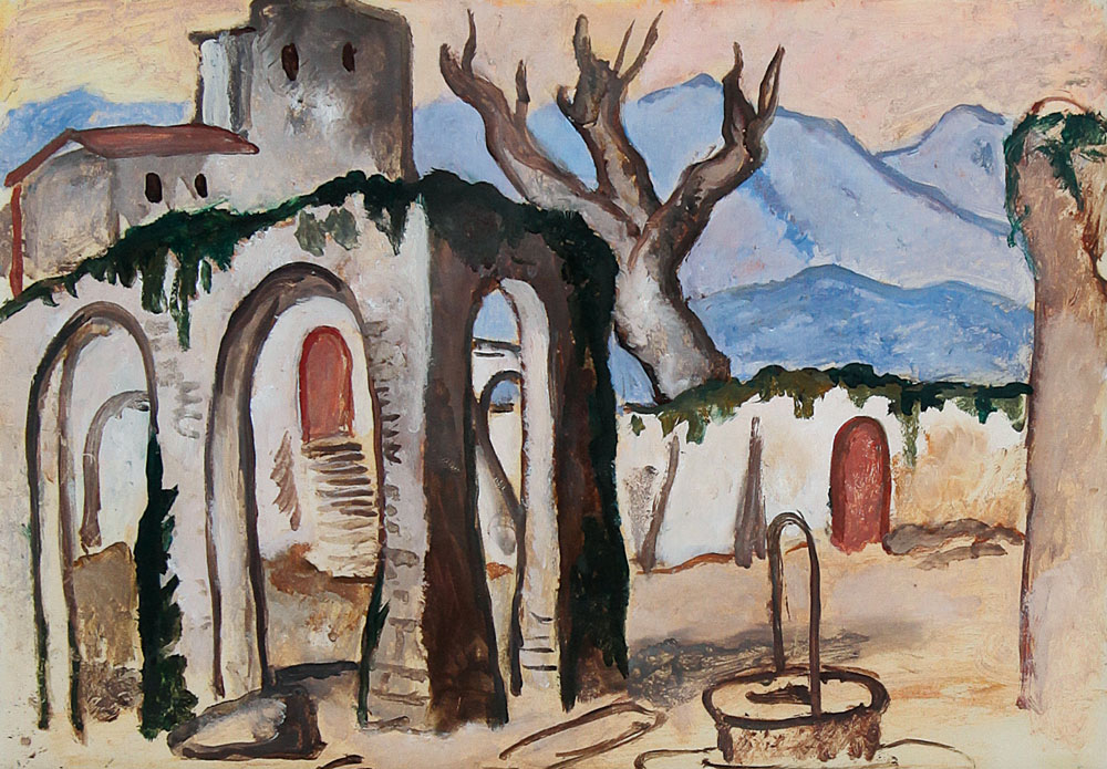 olio e acquerello su carta intelata cm. 35x48, opera non firmata, etichetta, timbro e firma per autenticità e provenienza della Christie's (Roma) su foto, provenienza Galleria d'Arte Ghelfi (VR).