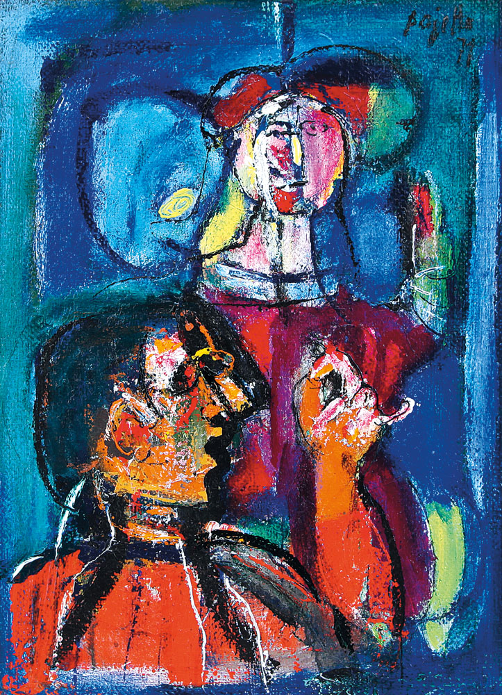 acrilico su tela cm. 70x50, firma e anno in alto a destra, opera registrata presso l'Archivio Guido Pajetta al numero 822 come da dichiarazione a cura dell'Arch. Giorgio Pajetta su foto.