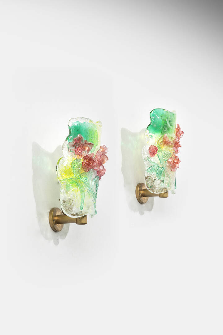 Lotto 25 | ALFREDO BARBINI<BR>Coppia di lampade da parete con fiori