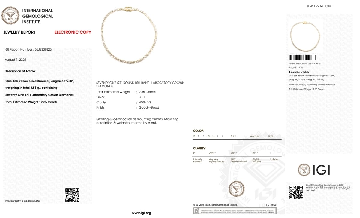 71 DIAMANTI LABGROWN PER CARATI TOTALI 2.85 COLORE D/E PUREZA VVS –VS CERTIFICATO IGI - COMMISSIONE D’ASTA 25%