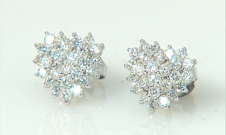 COPPIA DI ORECCHINI. In oro bianco 18 kt perno e farfalla, a cuore con diamanti taglio brillante per tot. cts. 1,50 ca.