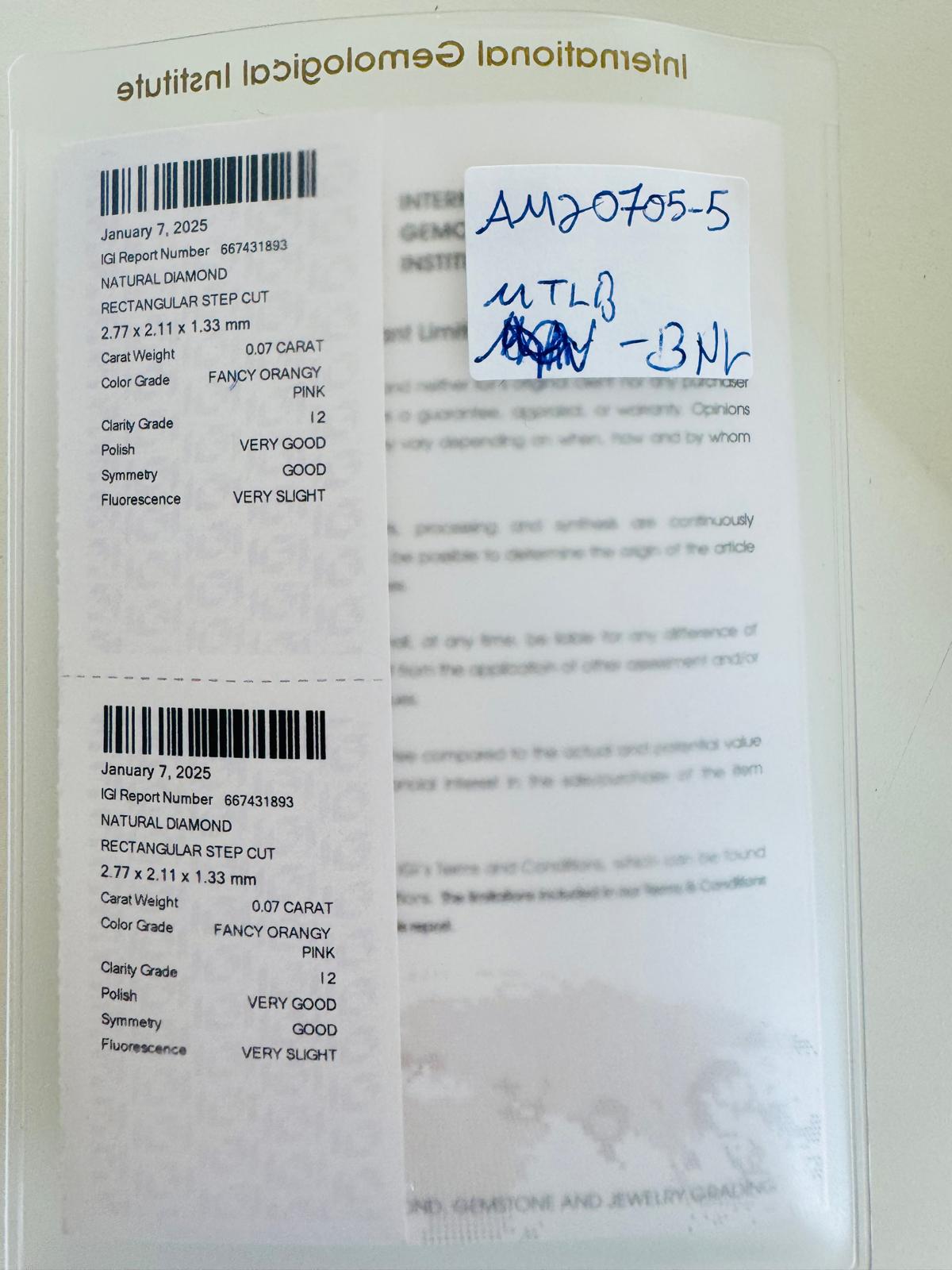DIAMANTE NATURAL POLISHED ROSA ARANCIATO 0,07 CARATI PUREZZA I2 – AM20705-5 - COMMISSIONE D’ASTA 25%