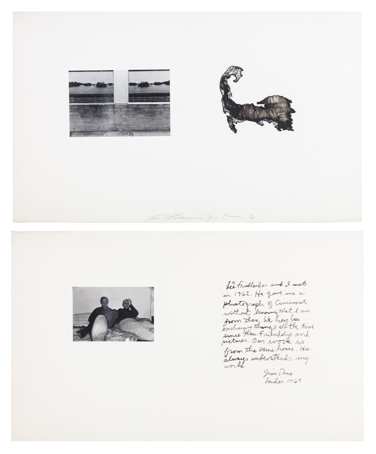 Una stampa firmata dall'artista e dal fotografo e numerata a matita al margine bianco inferiore recto. L'altra stampa con note, firma e data di Jim Dine stampate