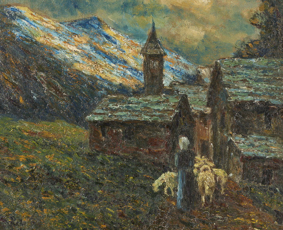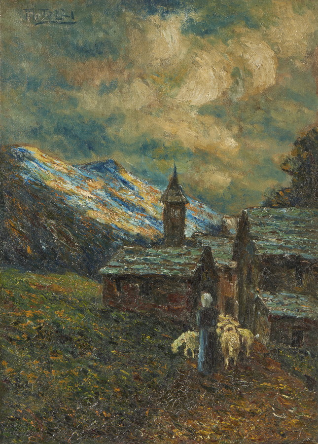 TOZZI MARIO (1895 - 1979) PAESAGGIO MONTANO. 1918. Olio su tela. Cm 37,50 x 52,00. firma