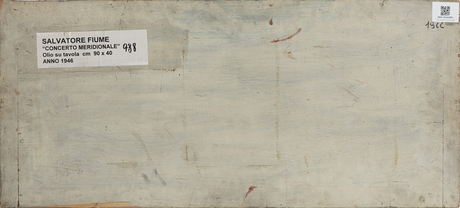 FIUME SALVATORE (1915 - 1997) CONCERTO MERIDIONALE. 1946. Olio su tavola. Cm 90,00 x 40,00. firma e data