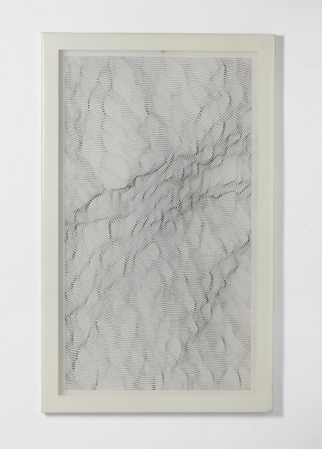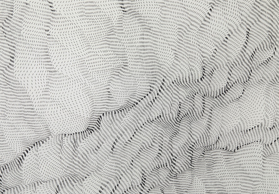 DADAMAINO (1935 - 2004) MOVIMENTO DELLE COSE. 1991. china nera su poliestere. Cm 70,00 x 114,00. firma e data sul lato sinistro
