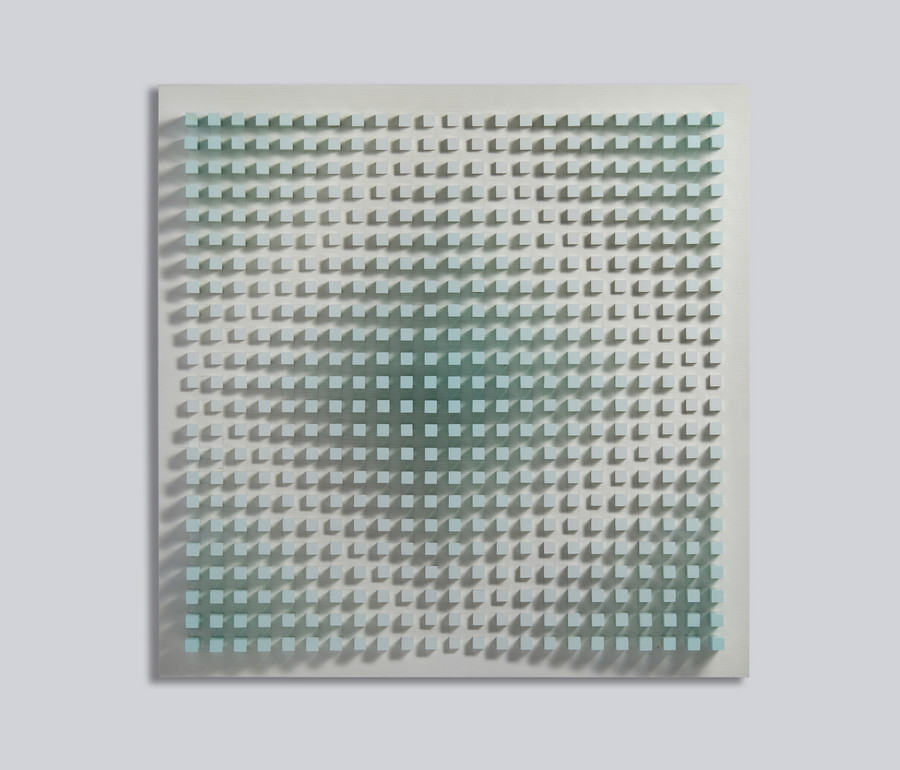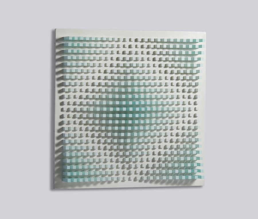 DADAMAINO (1935 - 2004) RILIEVO, 1973-1974. tasselli di legno verniciato su tavola. Cm 100,00 x 100,00. sul retro: firma e data