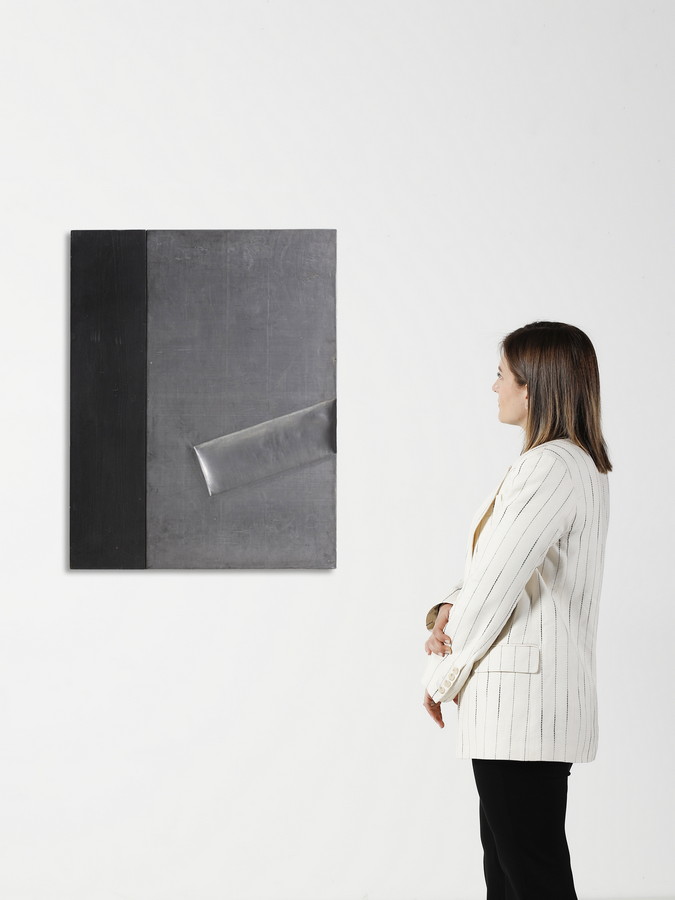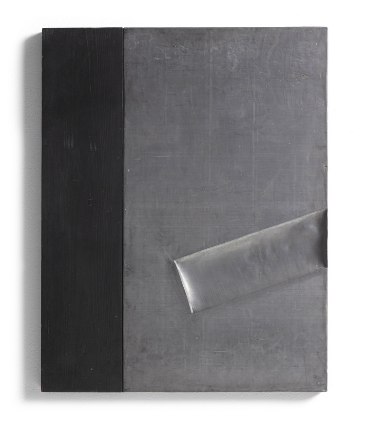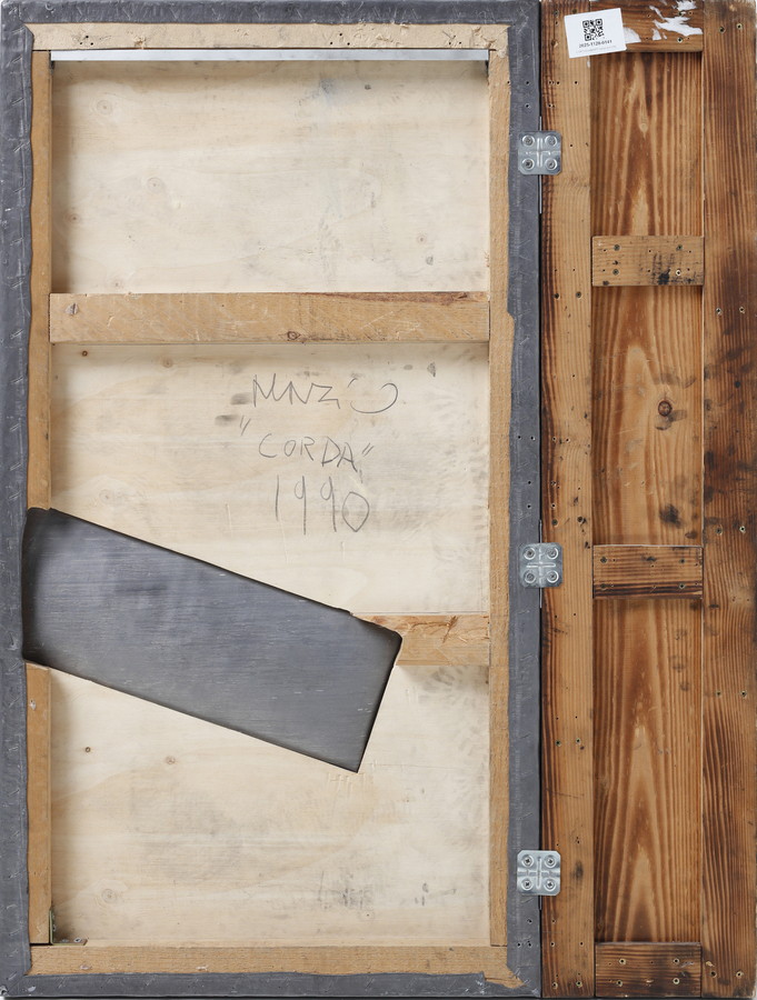 DI STEFANO NUNZIO (n. 1954) CORDA. 1990. Piombo e conduzione su legno. Cm 70,00 x 90,00. sul retro: firma, titolo e data
