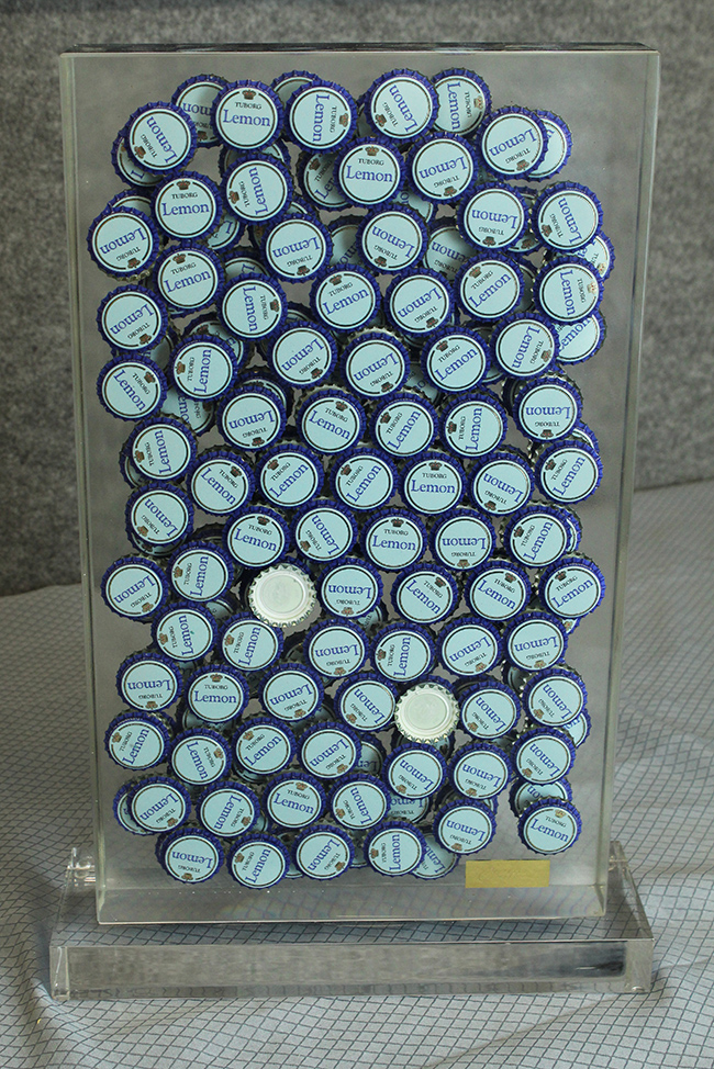 FERNANDEZ ARMAN, "Tuborg lemon", 1996, inclusione di tappi in resina, dim. cm 42x25x5, peso 7,50 kg, esemplare 26/30. L'opera è registrata presso l'Archivio Denyse Durand-Ruel al N°7616. Opera con certificato di provenienza Agorà. Al fronte: tiratura incisa in basso a sinistra. Al verso: firma incisa in basso a destra. Opera con base d'appoggio.