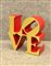 ROBERT INDIANA, "Love Red Gold", anni 2000, polistone dipinto, cm 15x15x7, tiratura 195/500. Opera con certificato di autenticità di E'dition Studio. Al verso: tiratura in basso a destra. Opera venduta con il suo contenitore personalizzato. Opera con certificato di provenienza della Daliano Ribani Arte.
