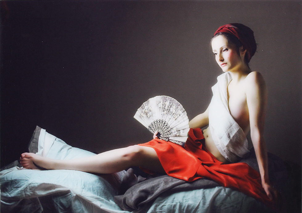 BANSRONT THIERRY, "Woman with white fan", anni 2000, fotografia su D-bond, dim 43x60. Al verso: nome autore, titolo, dimensioni.