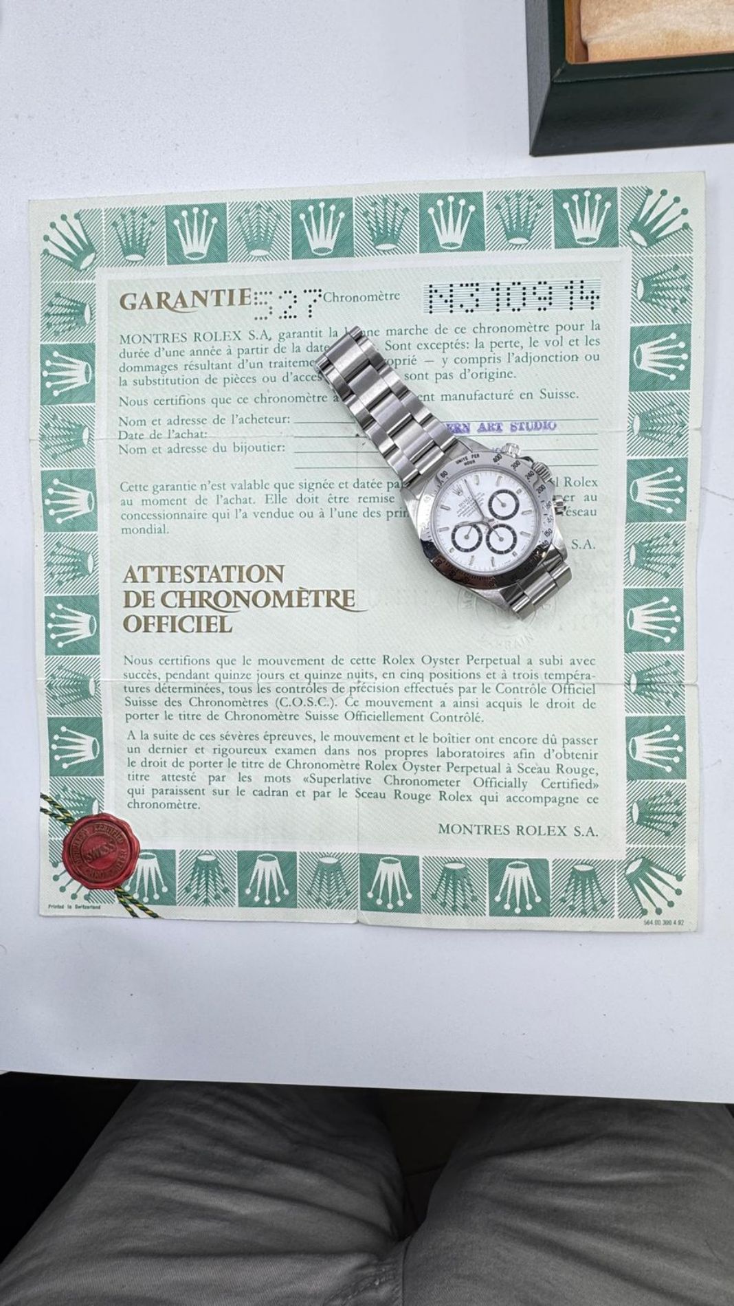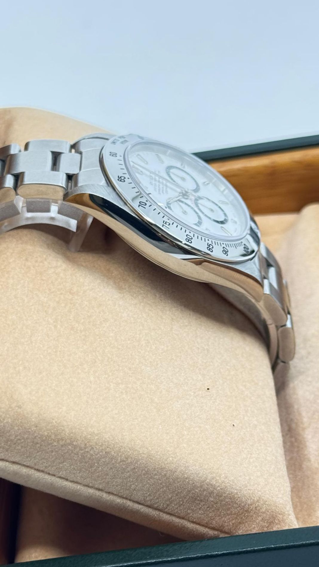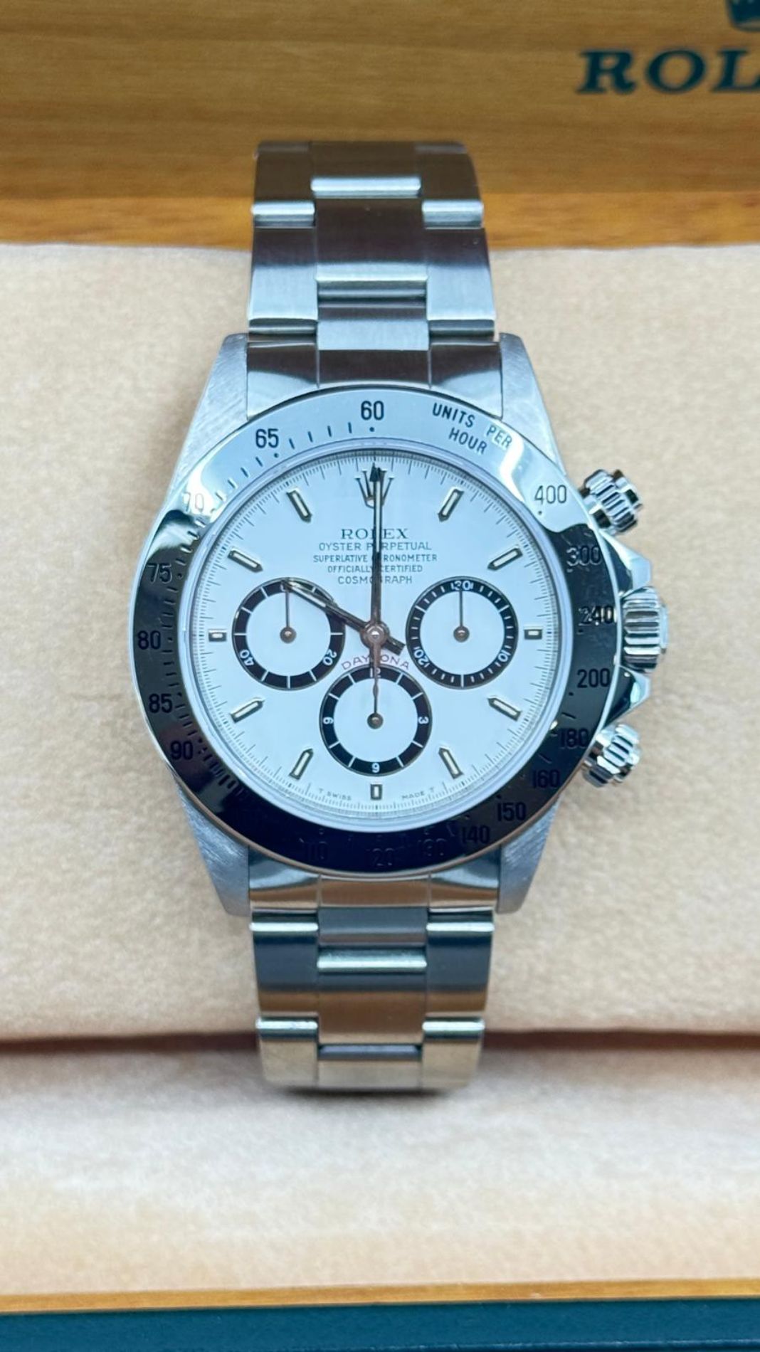 Marca Rolex Modello (Orologio) Daytona 6 rovescio Numero di referenza 16520 Carica Automatico Materiale della cassa Acciaio Materiale cinturino Acciaio Anno di produzione 1992 Condizione ottimo Corredo documenti originali, no box Carica Automatico Movimento zenith el primero Materiale della cassa Acciaio Diametro 40 mm Impermeabile 10 ATM Materiale lunetta Acciaio Vetro Vetro zaffiro Quadrante bianco Numeri sul quadrante Senza numeri Cinturino Materiale cinturino Acciaio Colore cinturino Acciaio Chiusura Déployante Materiale chiusura Acciaio Un anno di garanzia del negozio - COMMISSIONE D’ASTA 25%