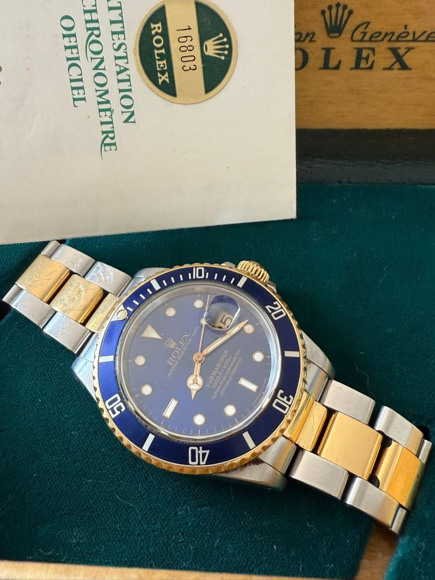 Marca Rolex Modello (Orologio) Submariner Date Numero di referenza 16803 Carica Automatico Materiale della cassa Oro/Acciaio Materiale cinturino Oro/acciaio Anno di produzione 1986 documenti originali Rolex, no box Carica Automatico Cassa Materiale della cassa Oro/Acciaio Diametro 40 mm Vetro Vetro zaffiro Quadrante Blu Cinturino Materiale cinturino Oro/acciaio Colore cinturino Oro/acciaio - COMMISSIONE D’ASTA 25%