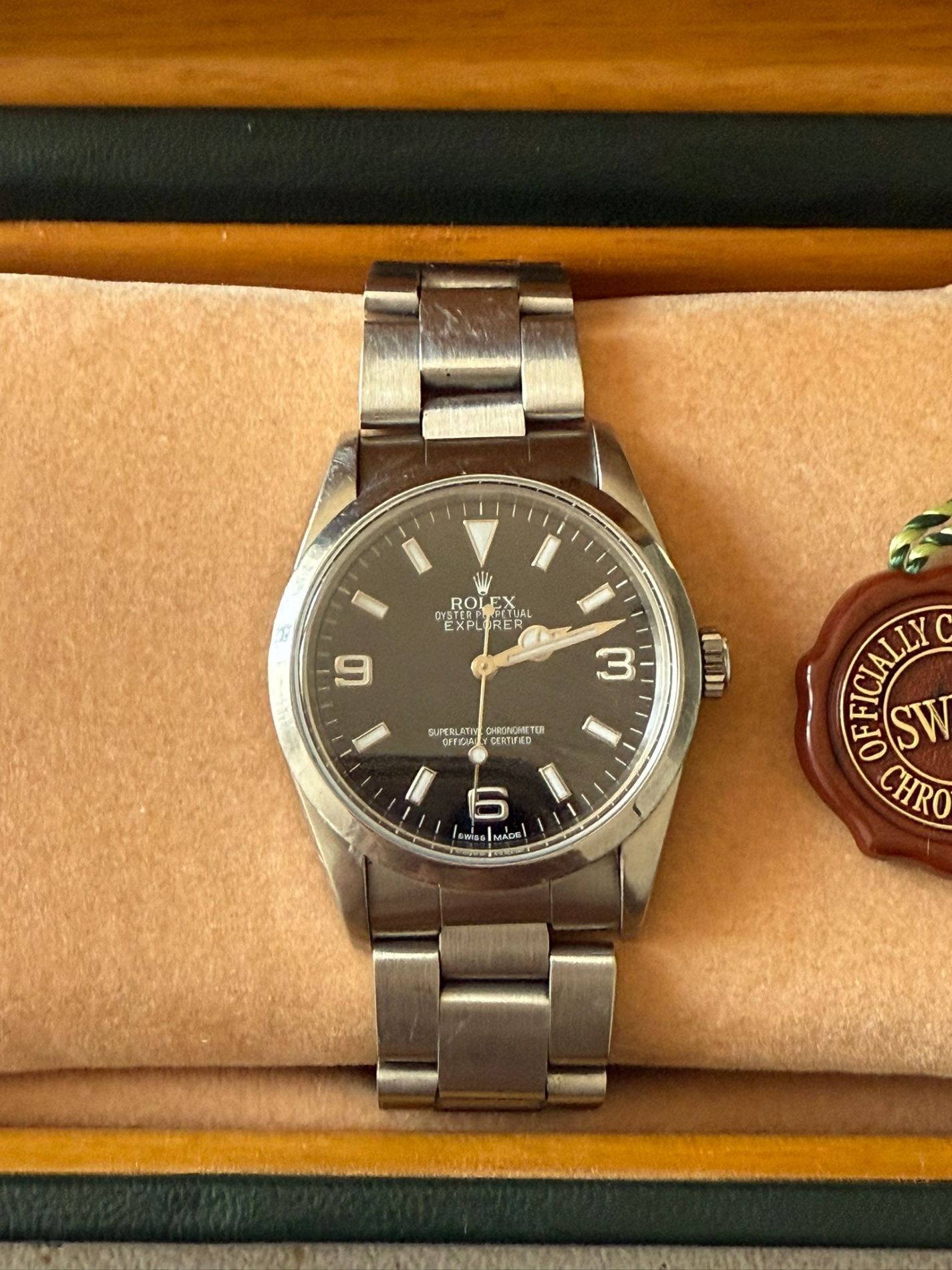Marca Rolex Modello (Orologio) Explorer Numero di referenza 14270 Carica Automatico Materiale della cassa Acciaio Materiale cinturino Acciaio Anno di produzione 1994 Condizione Ottimo (di seconda mano, segni di usura assenti o appena visibili) Corredo No documenti originali Rolex, no box Cassa Materiale della cassa Acciaio Diametro 36 mm Impermeabile 10 ATM Materiale lunetta Acciaio Vetro Vetro zaffiro Quadrante Nero Numeri sul quadrante Arabi Cinturino Materiale cinturino Acciaio Colore cinturino Acciaio Chiusura Déployante Materiale chiusura Acciaio - COMMISSIONE D’ASTA 25%