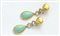 COPPIA DI ORECCHINI PENDENTI. In oro giallo e bianco 18 kt, perno e clip, motivi superiori a goccia da cui dipartono settori verticali esagonali terminanti con inserti in turchese taglio goccia cabochon, diamanti taglio brillante per tot. cts. 0,55 ca. a decoro.
