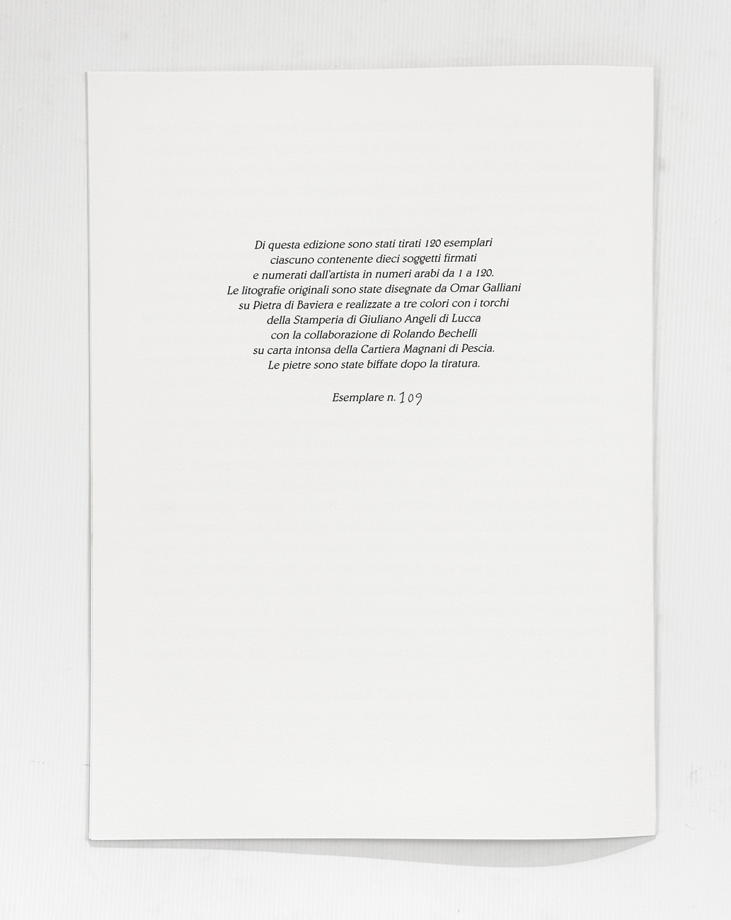 Edizione realizzata in 120 copie su carta della Cartiera Magnani di Pescia