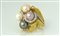 ANELLO. In oro bianco e giallo 18 kt montatura lavorata a corteccia con decoro superiore in diamanti taglio brillante per tot. cts. 0,40 ca. e perle coltivate d'acqua dolce di mm 8 ca. con diverse sfumature di colore.